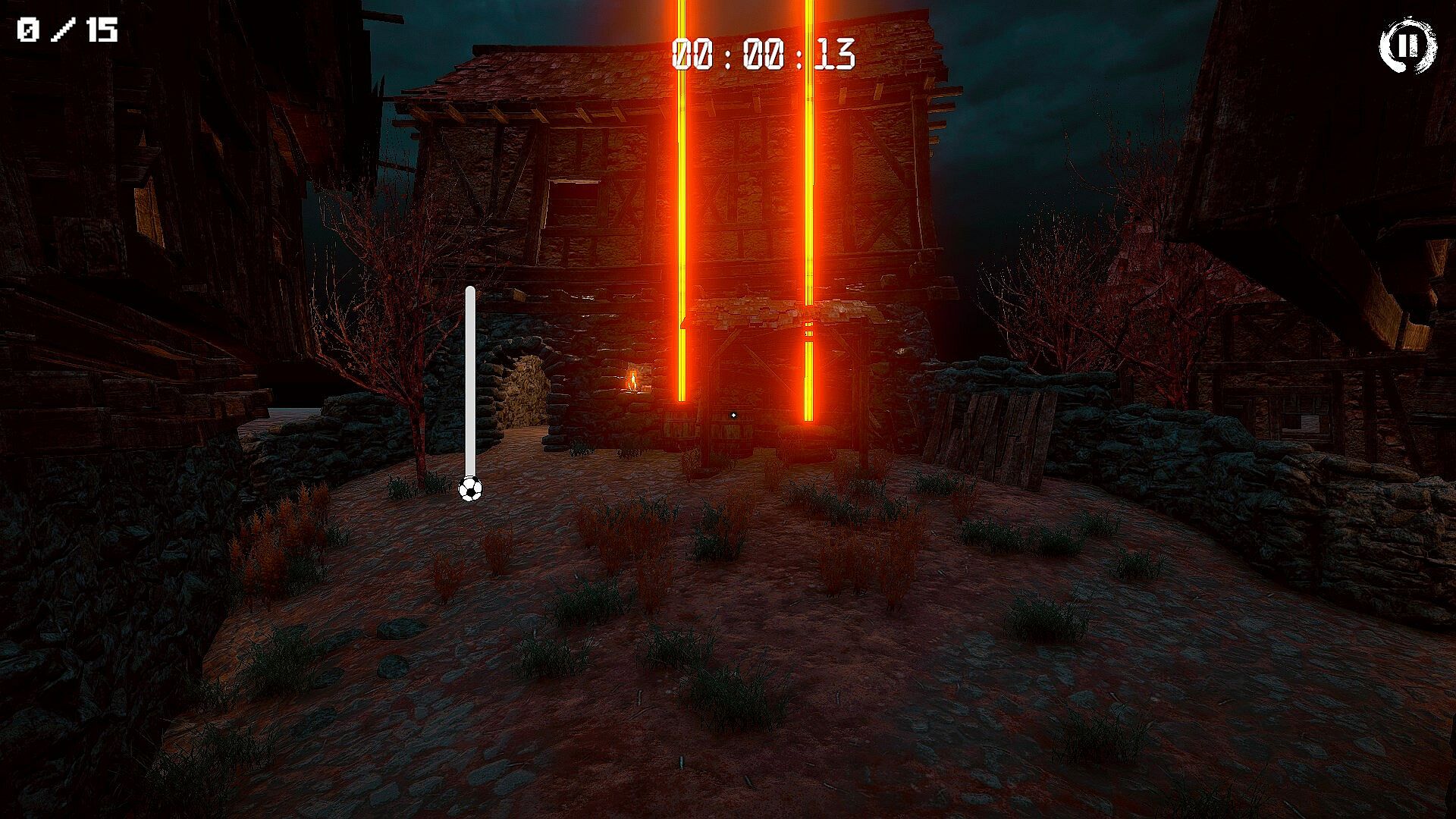 The player needs to control the camera on the WASD buttons and the mouse, find all the necessary objects on the location and hold down the left mouse button, controlling the force of the blow to the ball, knock them down as quickly as possible, getting points for it.