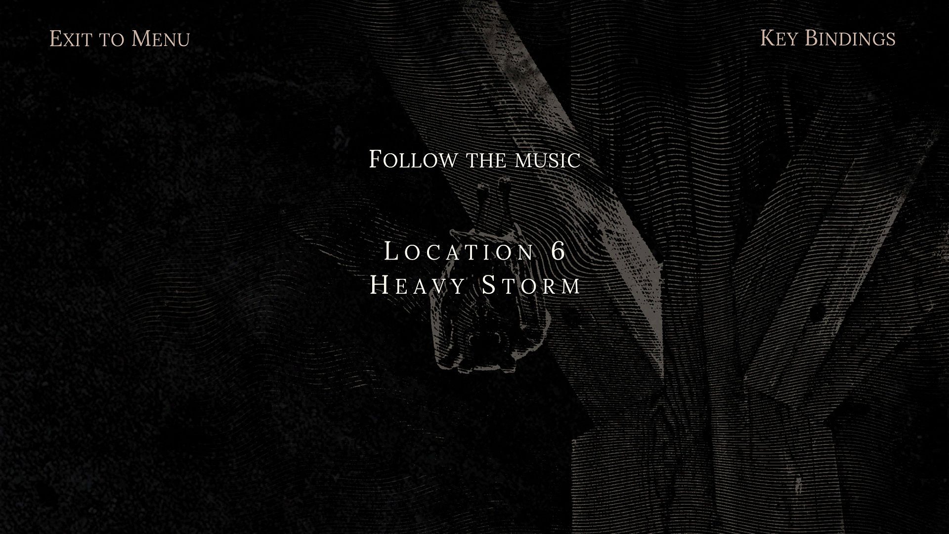 Gravure-style hand-drawn images briefly pierce the darkness.