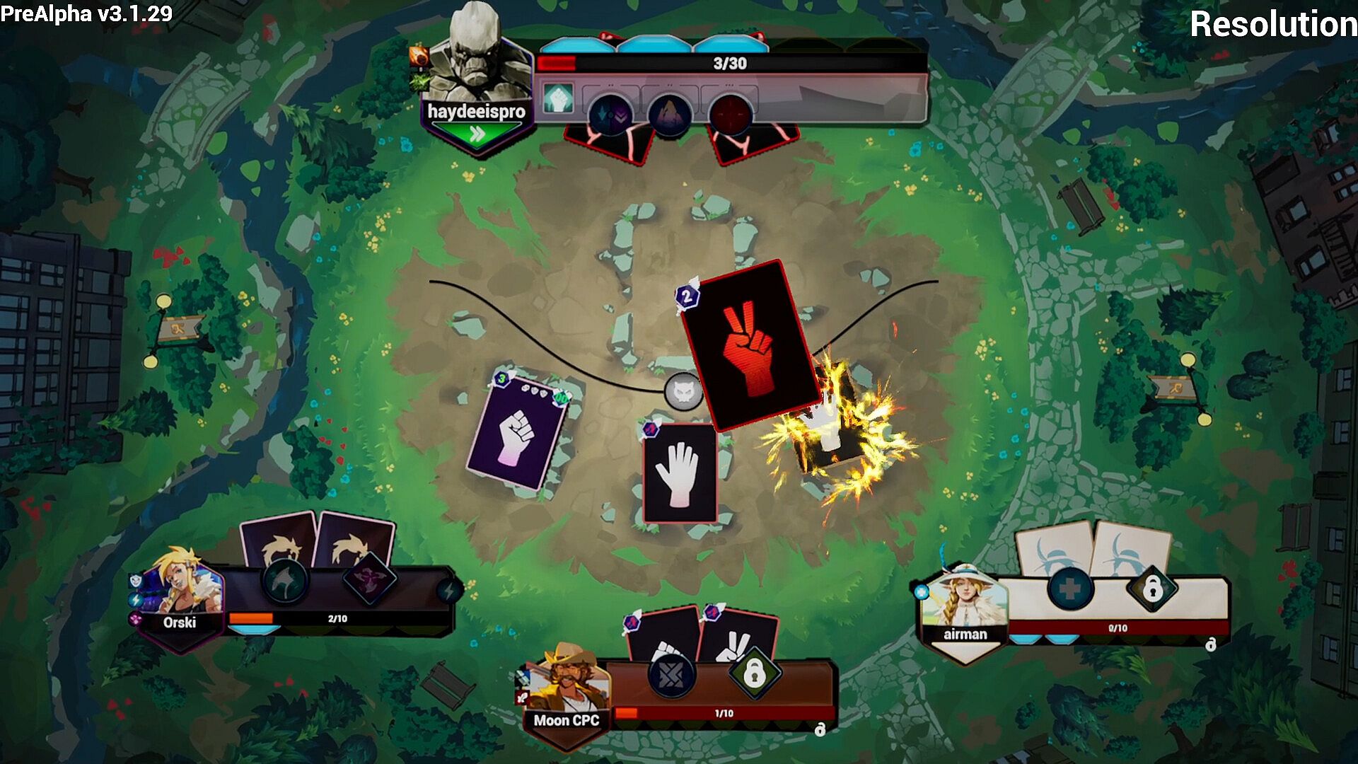 Each boss has a unique, high-value throw, but every player knows it. If you grow stronger with every Paper you play, do you still play it? Or do you use the Heroes' fear against them and crush their incoming Scissors with a Rock?