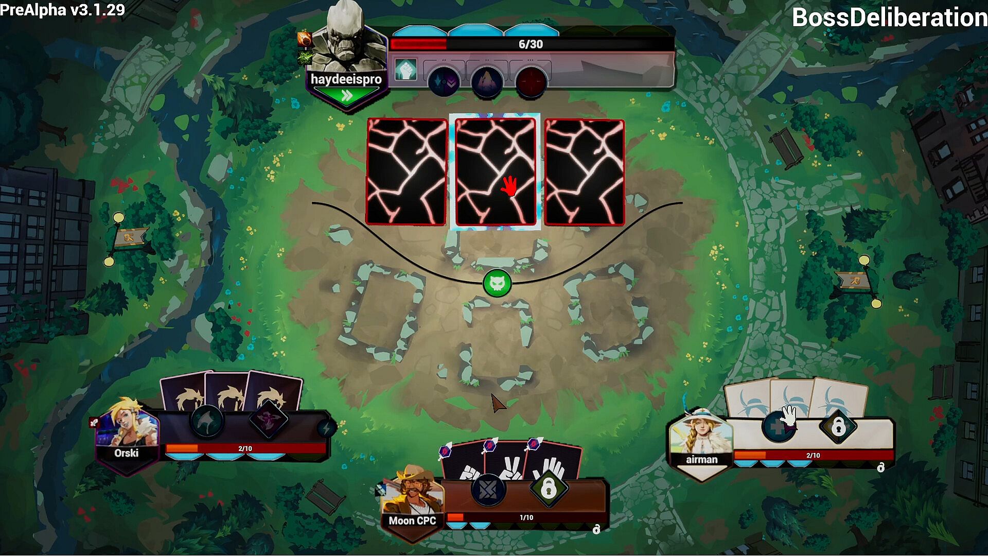The Reveal phase:Â Combat begins when the Boss flips their card and damage is dealt based on the results.Â