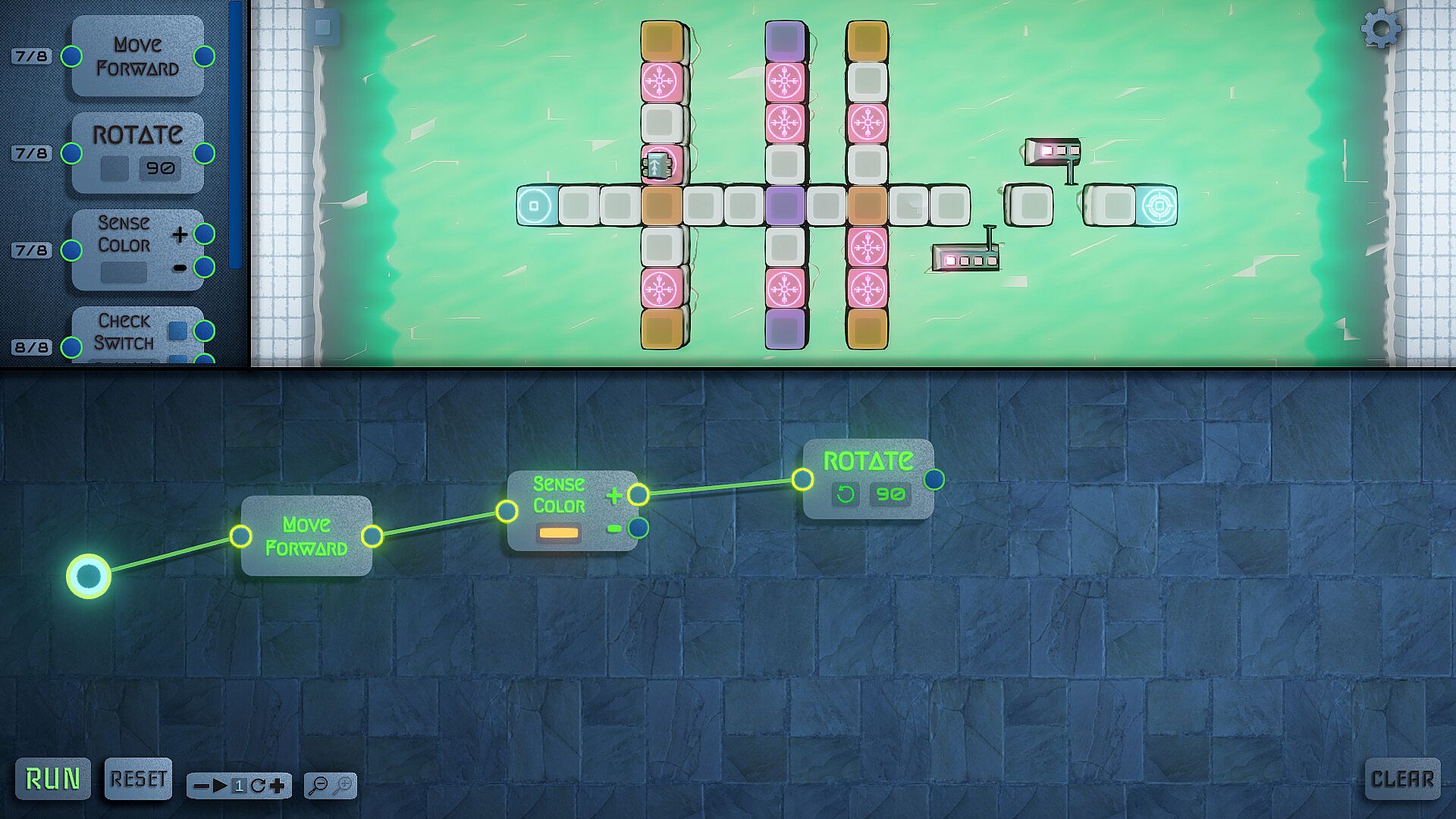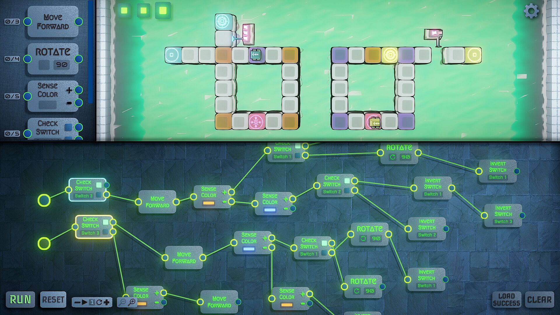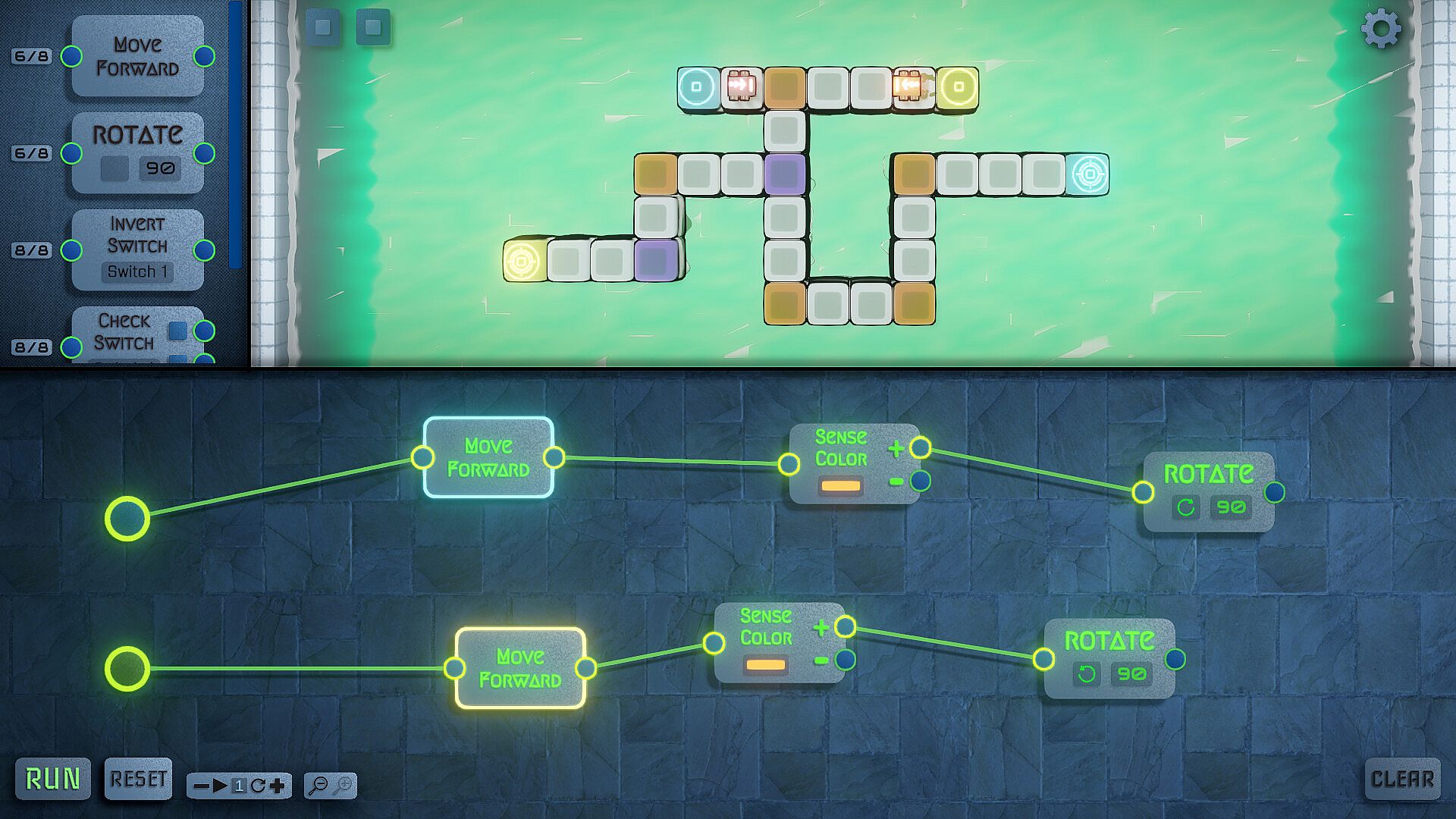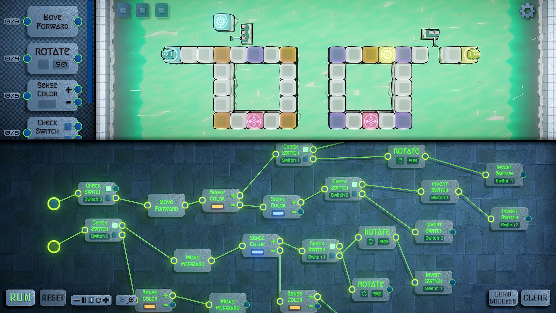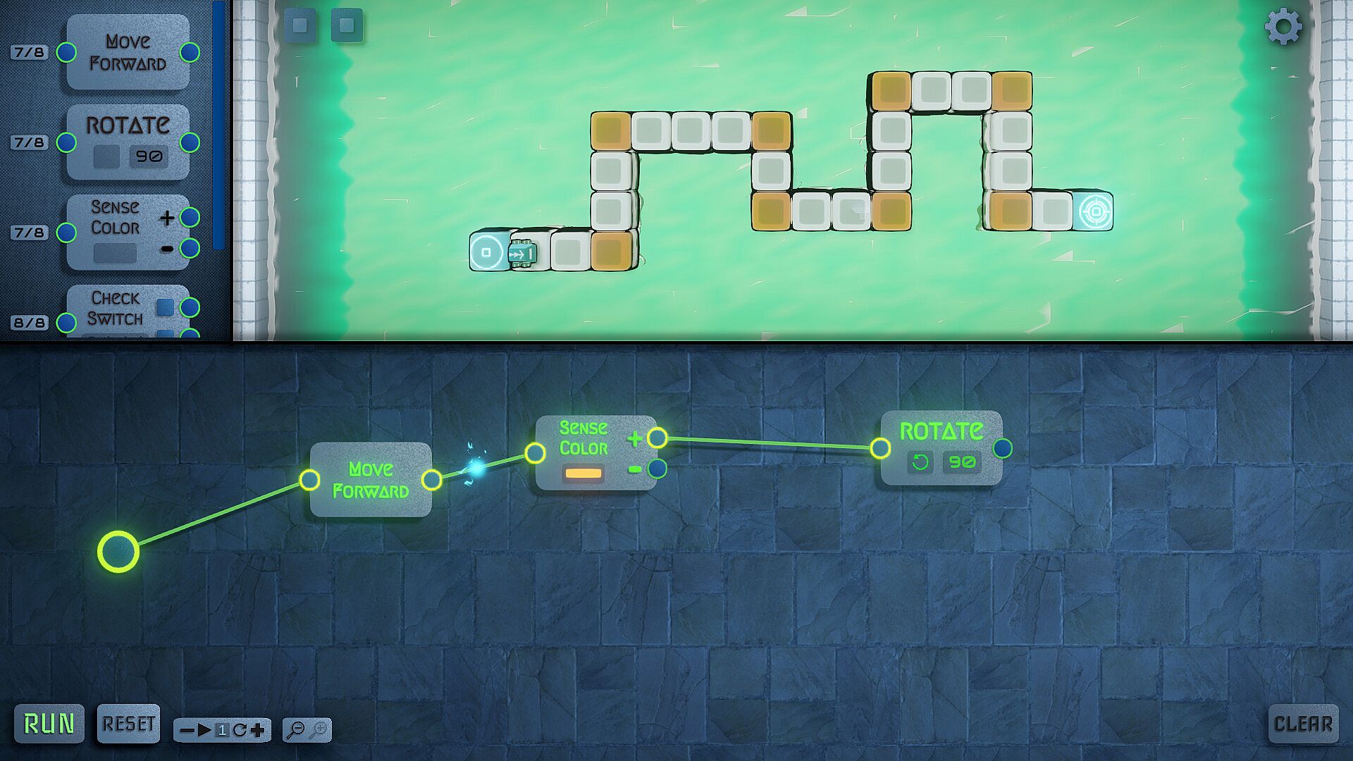 Take control of your rover's journey across a variety of intricate grid-based paths by coding its behavior through an intuitive and powerful flow-based Node Graph. This visual system lets you build logical sequences by simply connecting nodes.