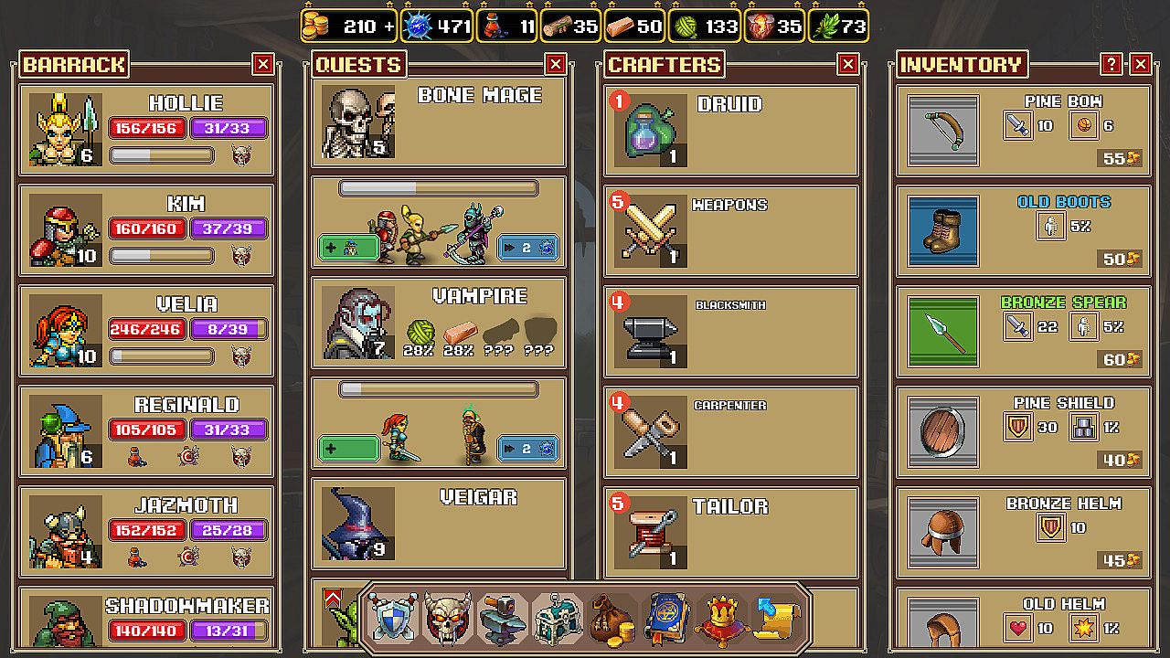In this addictive and engaging game, you'll send your Heroes out on epic quests to fight enemies and gather materials while your Crafters use those materials to create weapons and armor. The possibilities are endless, with over 100 pixel-art Heroes and enemies.
