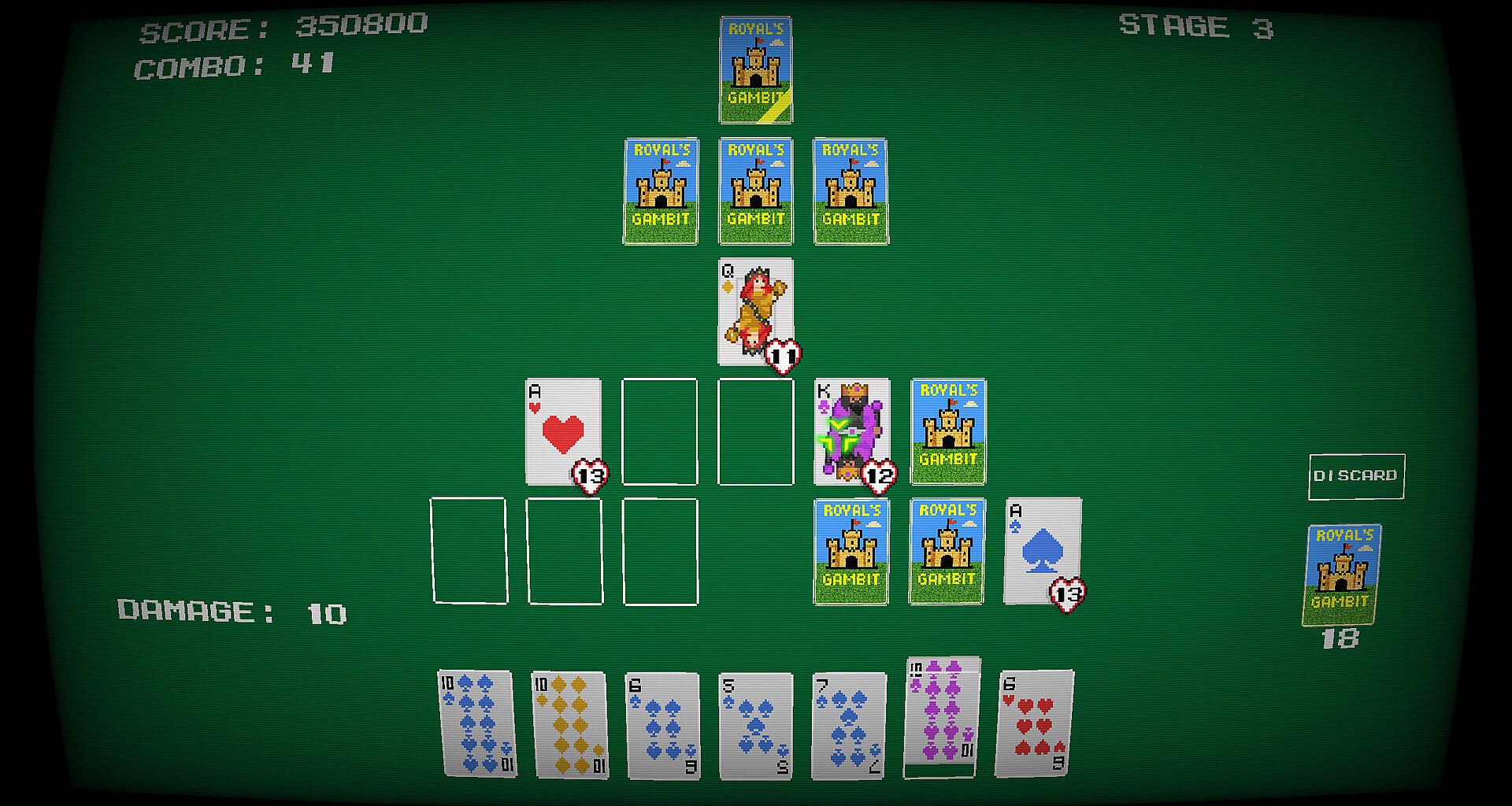 Royal’s Gambit is a retro-inspired, turn-based card strategy game where every decision counts. Face off against intricate 16-card stage patterns made of powerful royal face cards standing in your way. To clear a path to the exit, you'll need to match card values to their health—planning carefully with every move.