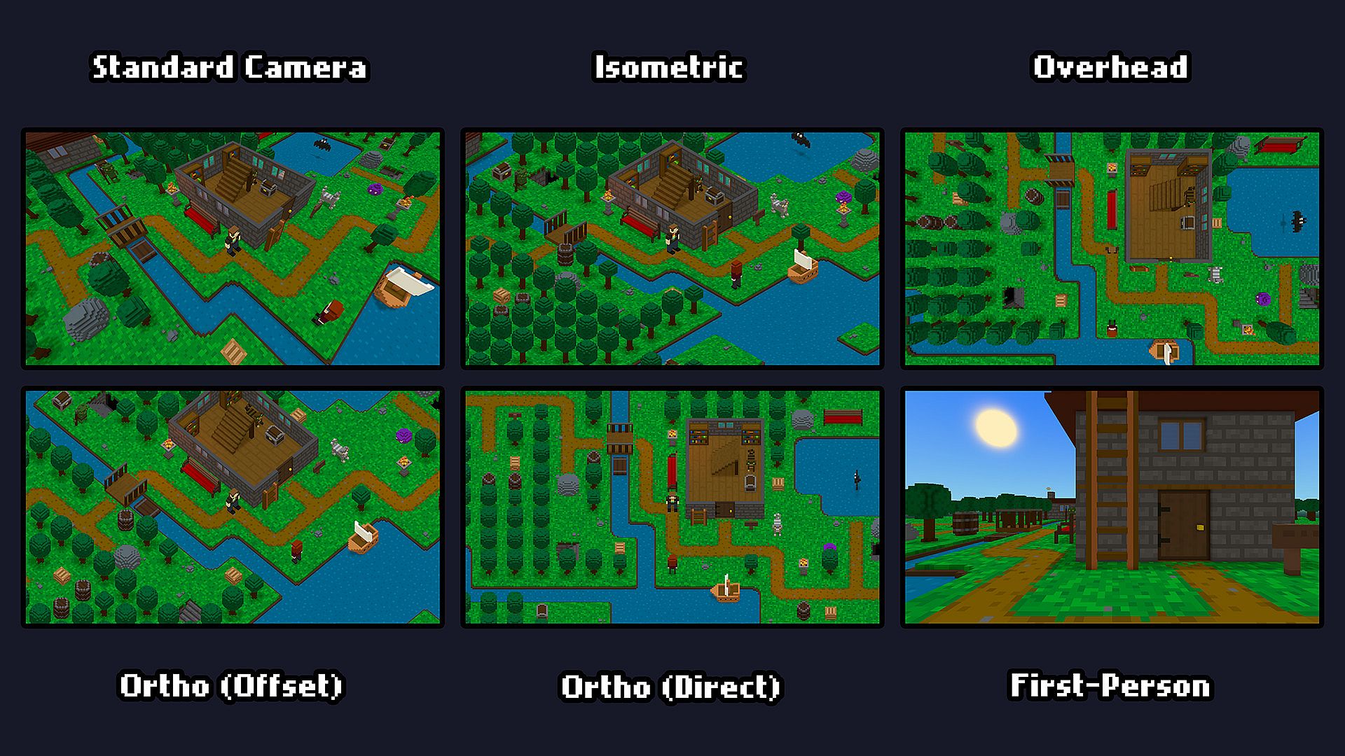 Choose from three available camera presets (standard, isometric, and first-person) or tweak the settings to create a custom camera. Stage dynamic cutscenes for your game using the engine’s flexible camera scripting system.