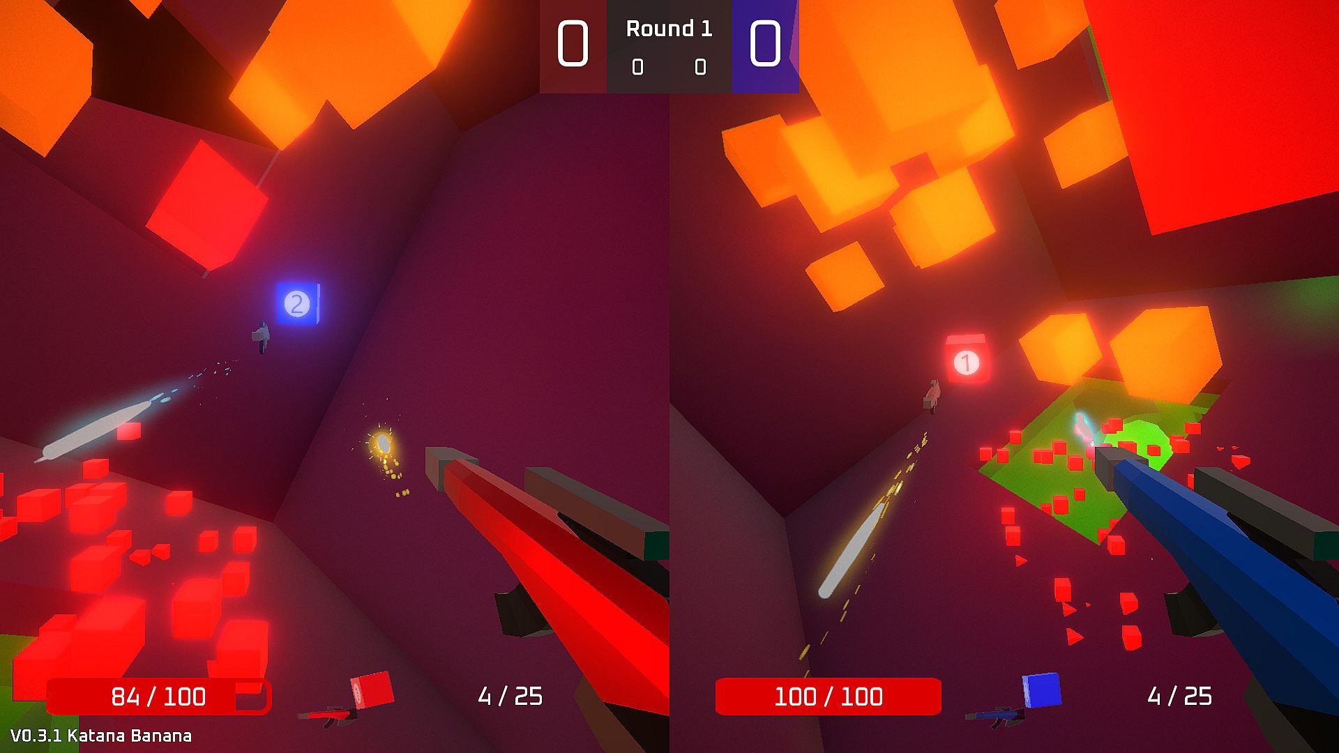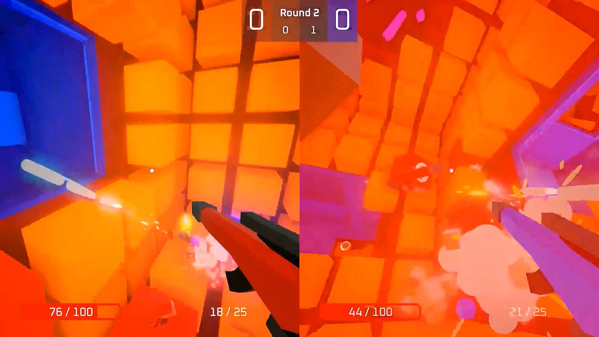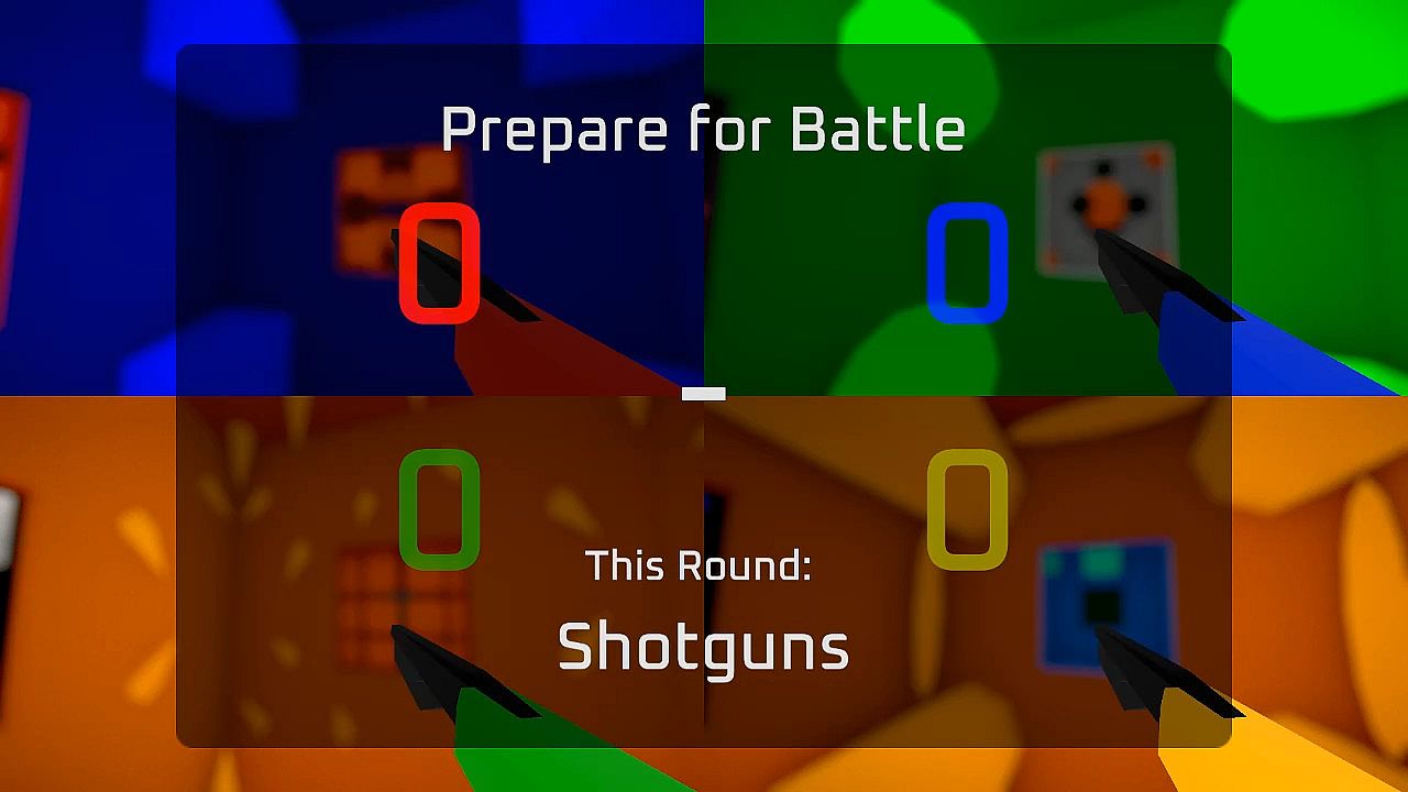 RUBICON is a local multiplayer battle arena merging the simple fun of classic couch co-op with a few brand-new twists - figuratively and literally! As fans of head-to-head shooters from the late 90s and early 2000s, our vision is all about rekindling the appeal and nostalgia of playing a game with your buddies in the living room. RUBICON is jam-packed with exciting gameplay features purposefully designed to build an explosive party atmosphere where anything can happen and every round has something new and different. You might get, say, a powered-up shotgun that fires 15 massive missiles with a single trigger pull; on the other hand, you might find yourself pitted against an invisible enemy with a sniper rifle or an adversary whose protective shield's utility is hampered by the fact that he's ballooned to twice his original size. A new weapon every round and a new special modifier after each point means hours upon hours of good old-fashioned fun.