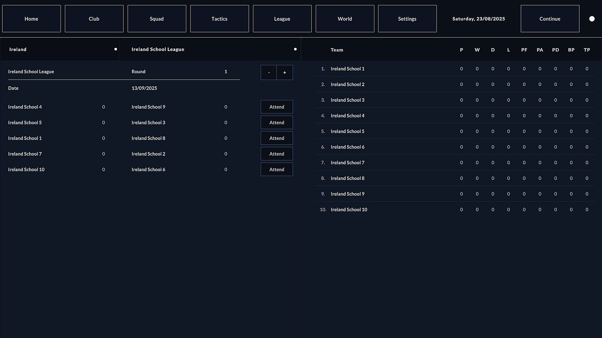 This is a management simulation that bridges the gap between school rugby and the professional senior game. The world is populated by thousands of players who start their careers at age 16 in the school leagues and progress into the full senior system.