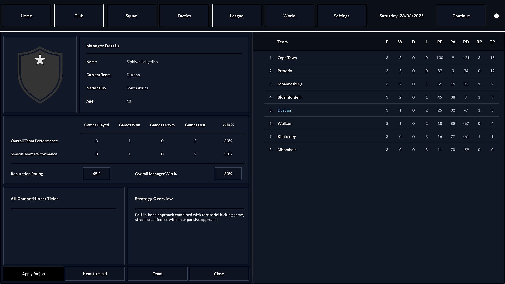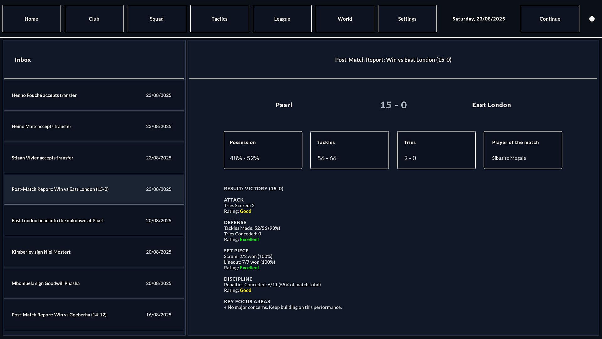 Tactics and Simulation You have full control over the technical side of the game. Matches are simulated live, allowing you to watch the action unfold through commentary and stats. Your decisions on zone defense, phase play, set-piece moves and team selection influence the result.