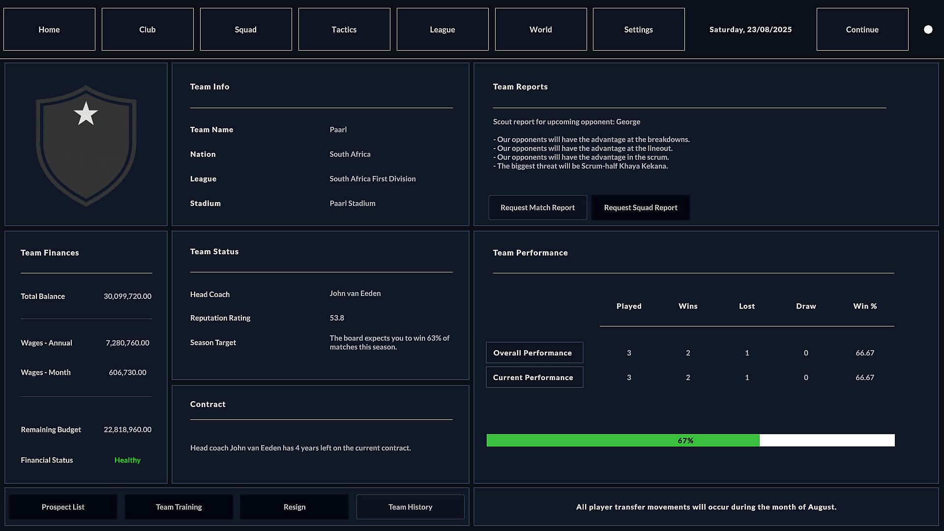 Squad Management: Handle training regimes, contract negotiations and transfer budgets.