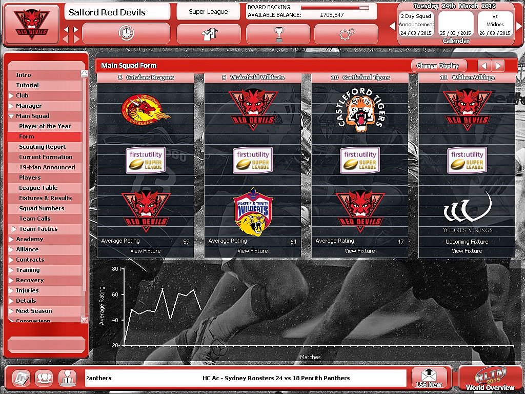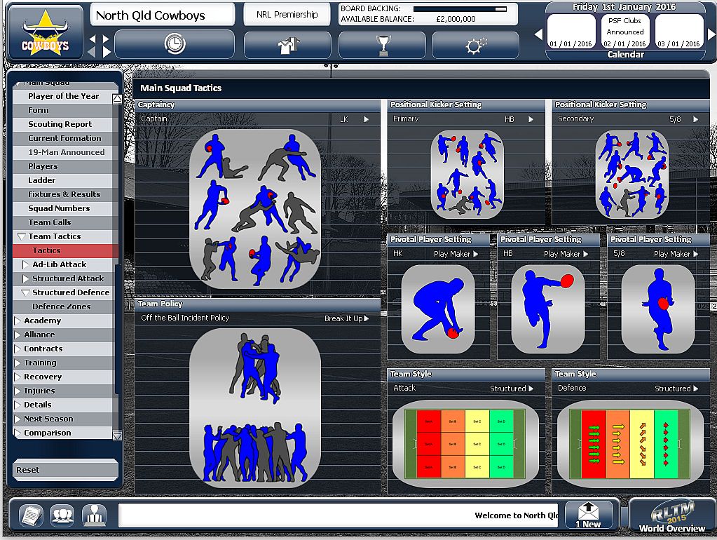 Rugby League Team Manager 2015 puts you, the player, in the heart of the action, of managing your own Rugby League club. The season is long, and the challenges aplenty, as you navigate your way through domestic campaigns and international competitions, within officially licensed leagues, in both the Northern and Southern hemispheres, with over 7000 senior players to choose from!