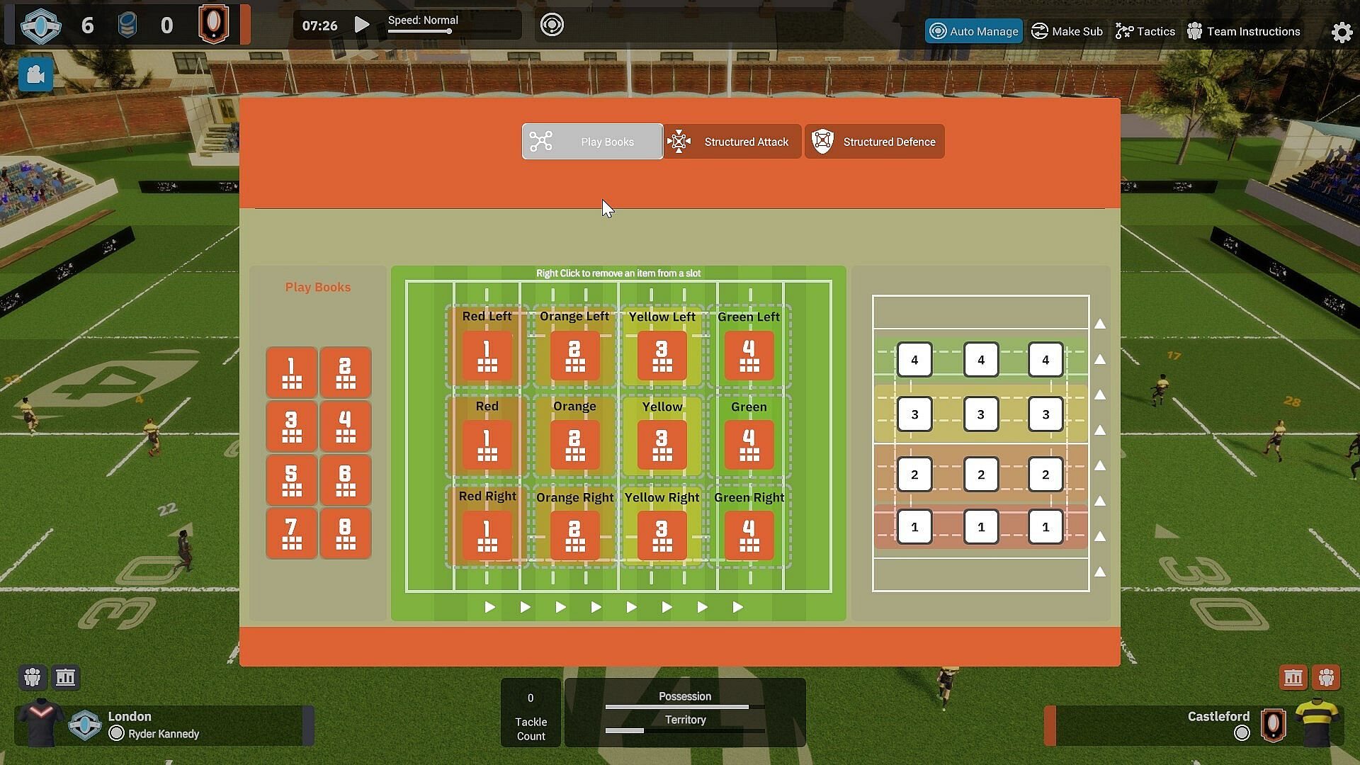 • Playbook. You can now pre-select moves in a sequence, then select a playbook for each zone of the pitch for those moves to play out.