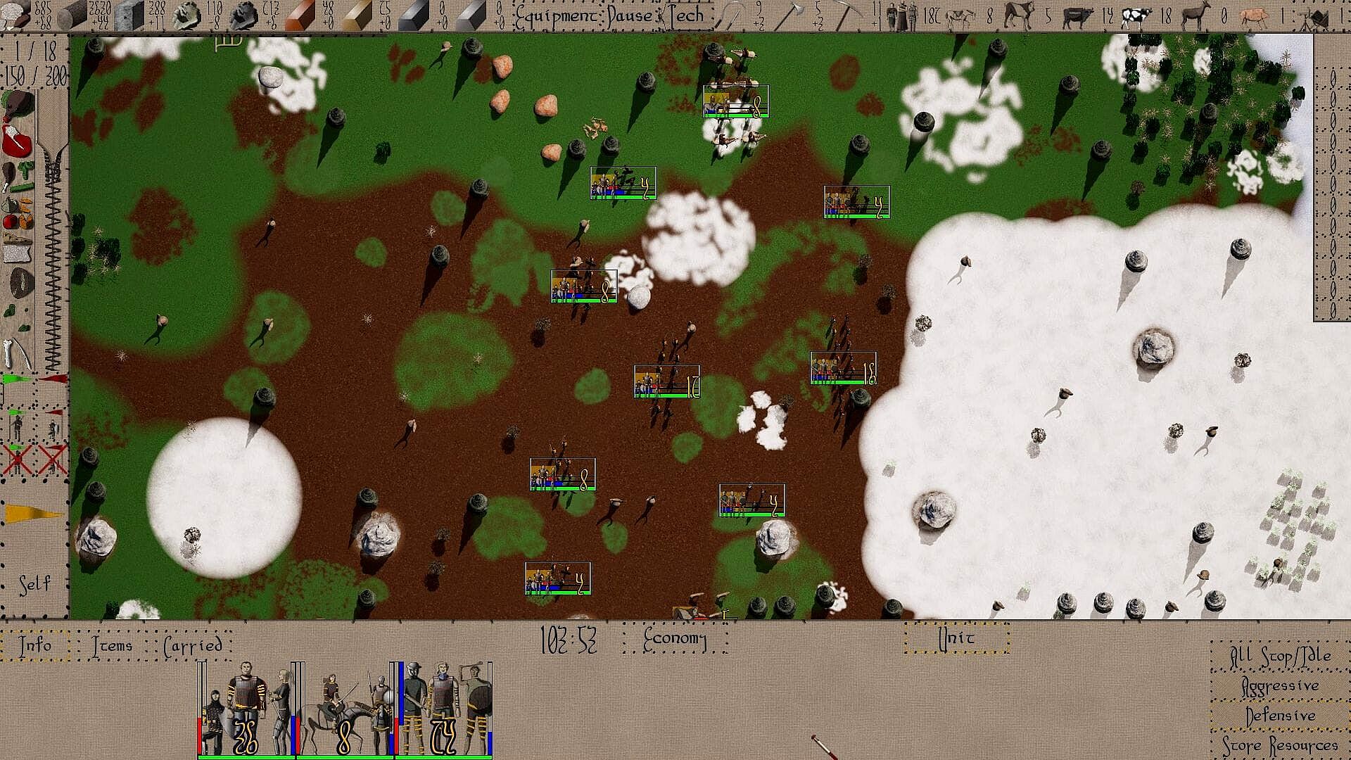 - Warriors are equipped with custom sets of equipment that you design. Create armored archers or light spearmen to fend of cavalry. Every piece of a warrior's equipment will impact their speed and combat abilities. Carried items and resources are dropped on death, allowing the victor to loot the battlefield.