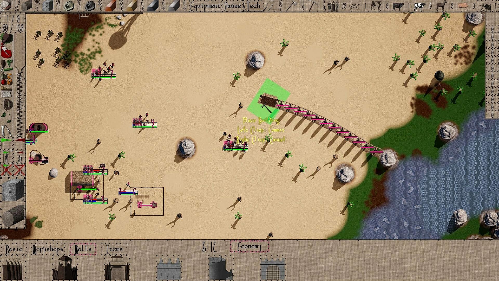 - Continuity of resources and items presents a new strategy of logistics. All resources gathered and items made are physically present in the game world. Resources must be moved to buildings for construction. Workshops must have resources delivered, and the items must be moved and stored in armories.