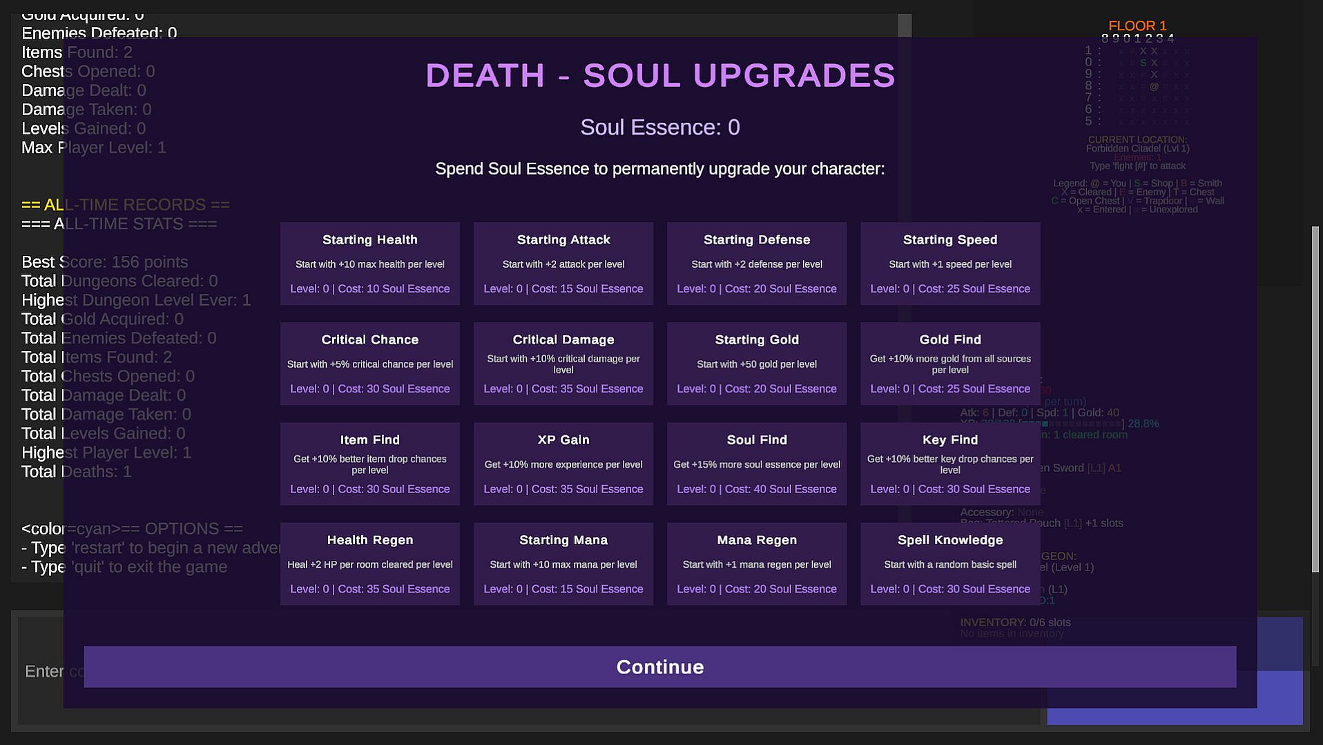 - Earn Soul Essence through your runs to permanently upgrade your character