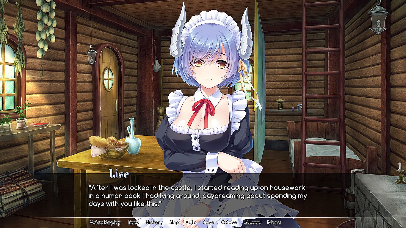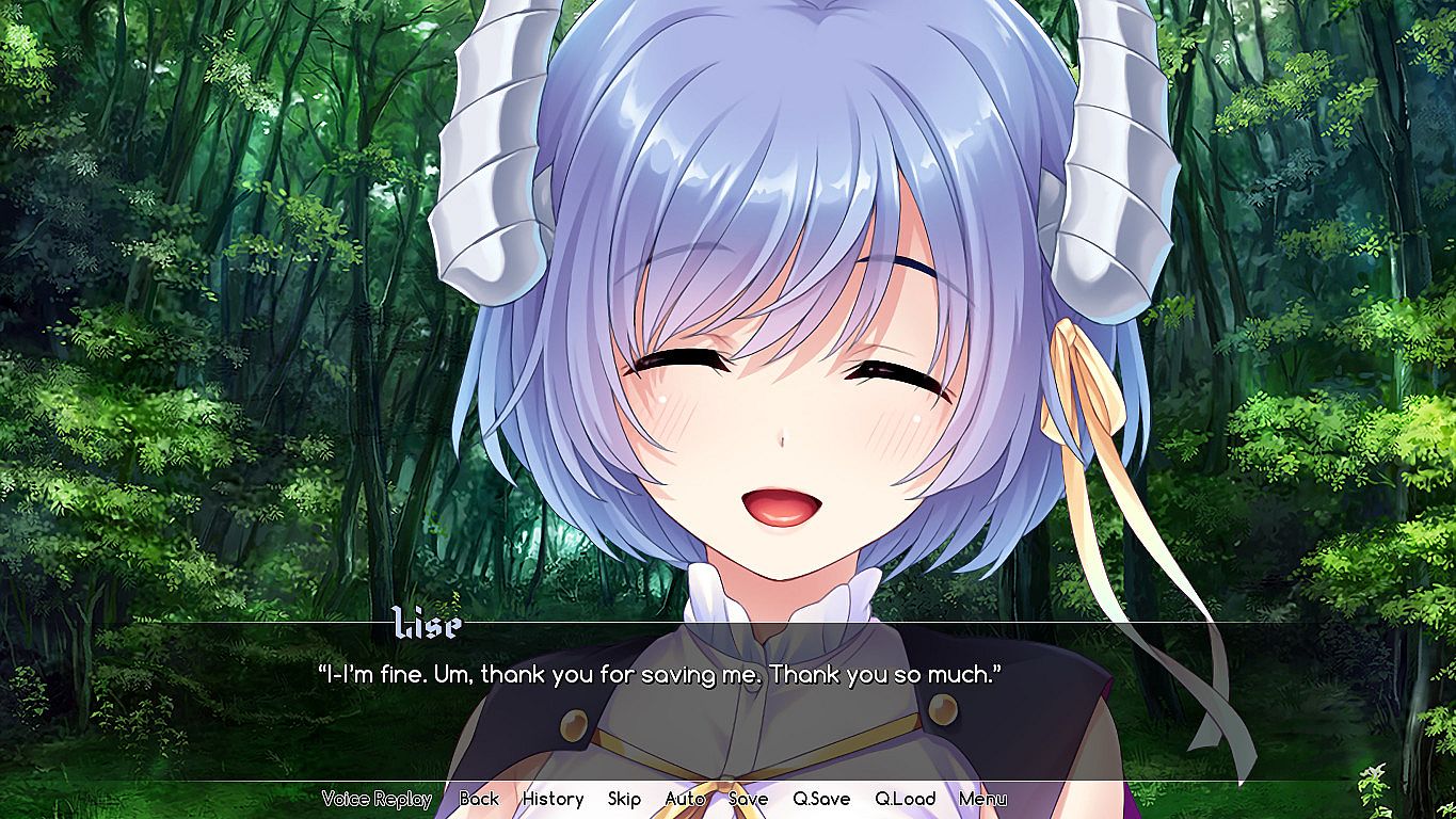 Transported to a forest that separates the Demon and Human world you encounter Lise, an adorable demon in distress, who summoned you by accident when she was attacked by bandits. After a brief battle with the bandits Lise, who is too pure for this world or ours, heals their wounds so they don't bleed out before someone finds them. Even though she is a Demon she doesn't want to see people suffer but is forced to flee after some human soldiers come to investigate the strange noises your little scuffle caused.