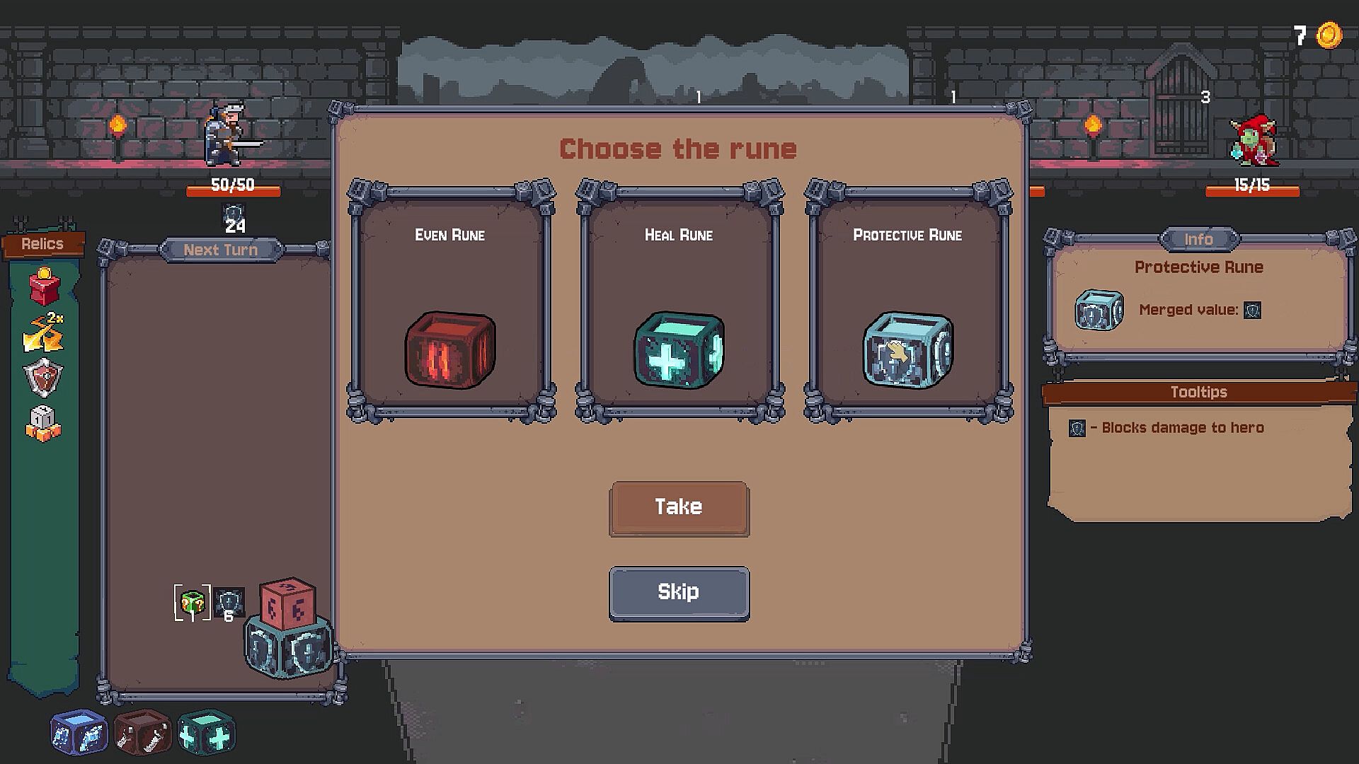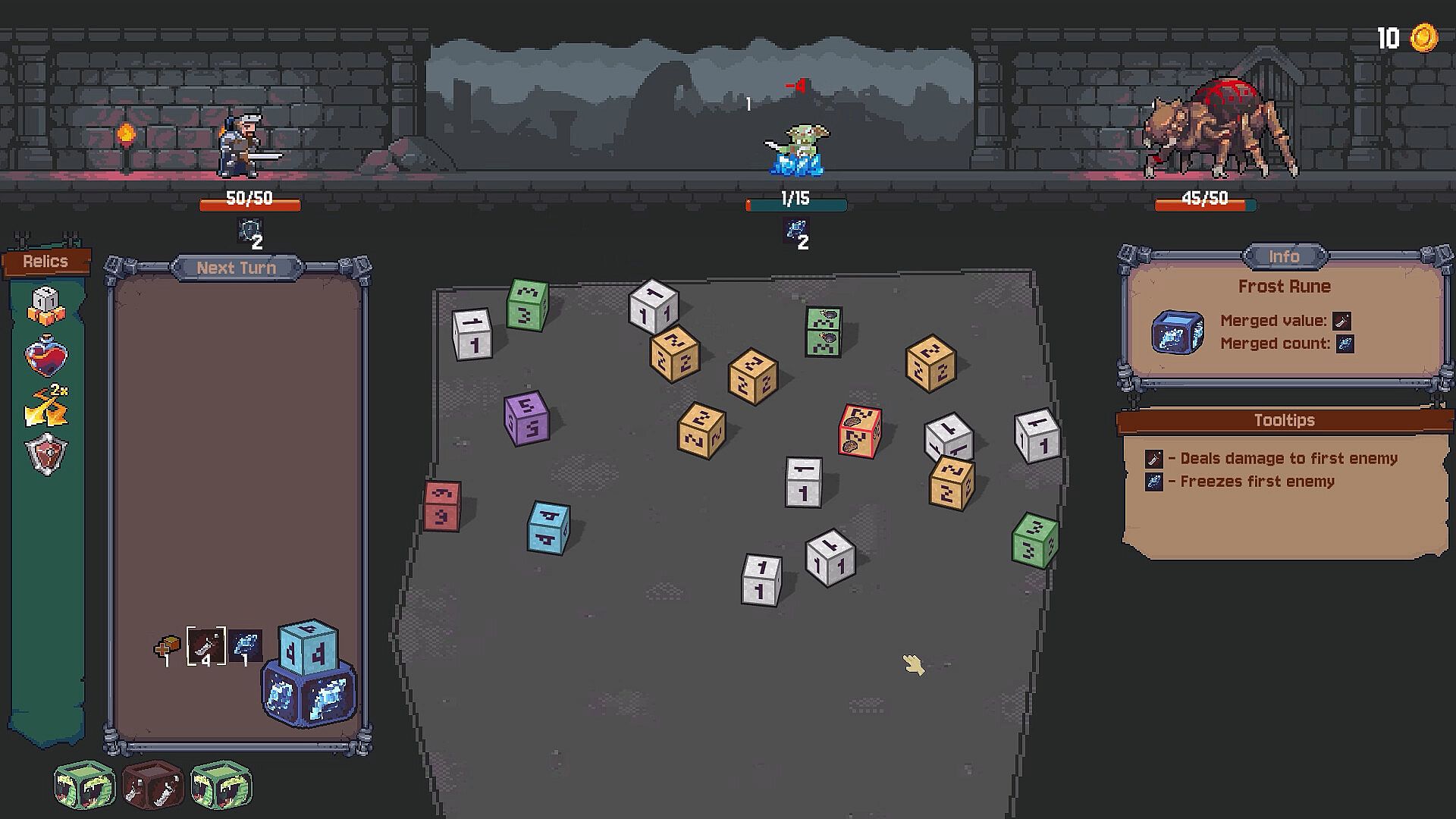 Craft a powerful combination of dice, relics, and runes that work together to define your playstyle.