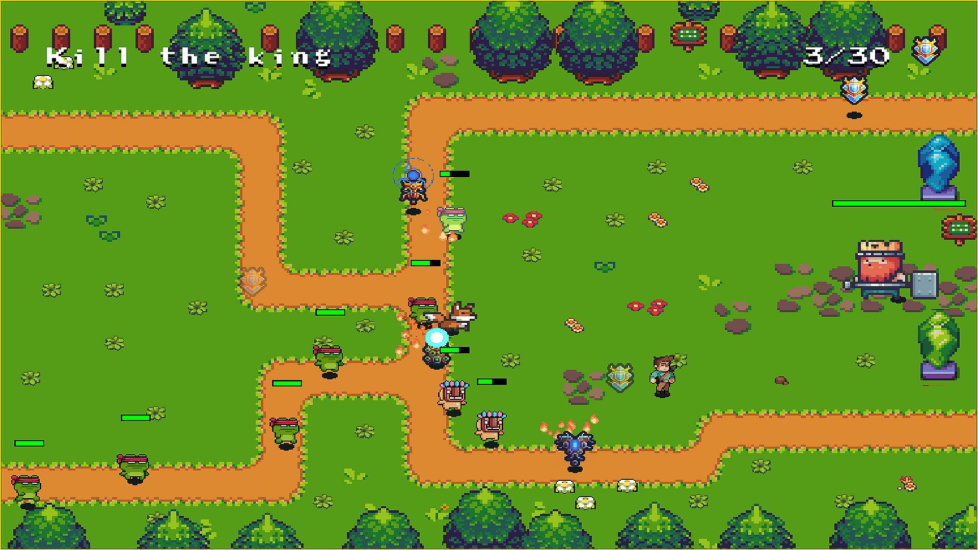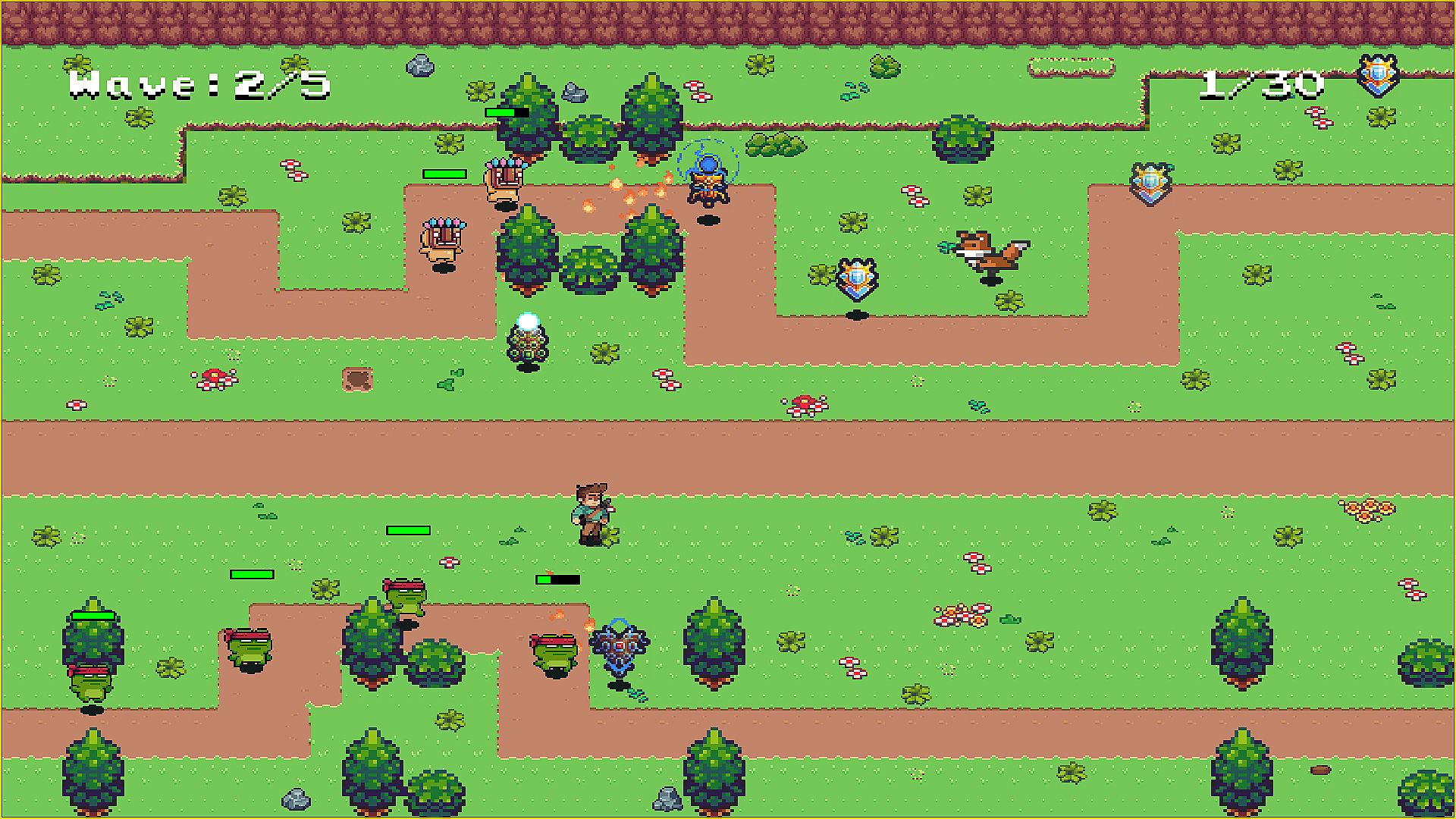 Your main mission is to pass succesful  all the waves. To create more crystals and strengthen them, you must collect special runes scattered across the world. A clever fox will assist you in this task — but he only works in exchange for a few runes.