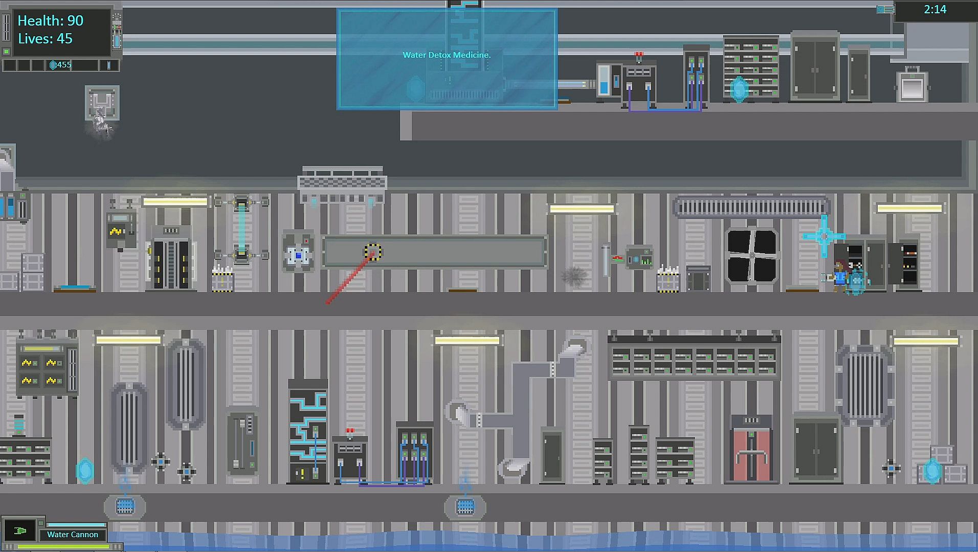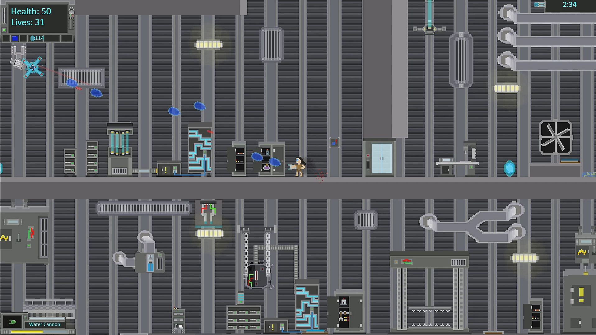 Running Water lets you explore each floor as you make your escape thru its puzzles while finding precious resources, power ups and technology to survive your battles against drones or even the facility layout itself. But beware, no subject is allowed to leave alive. Can you survive as a runner?