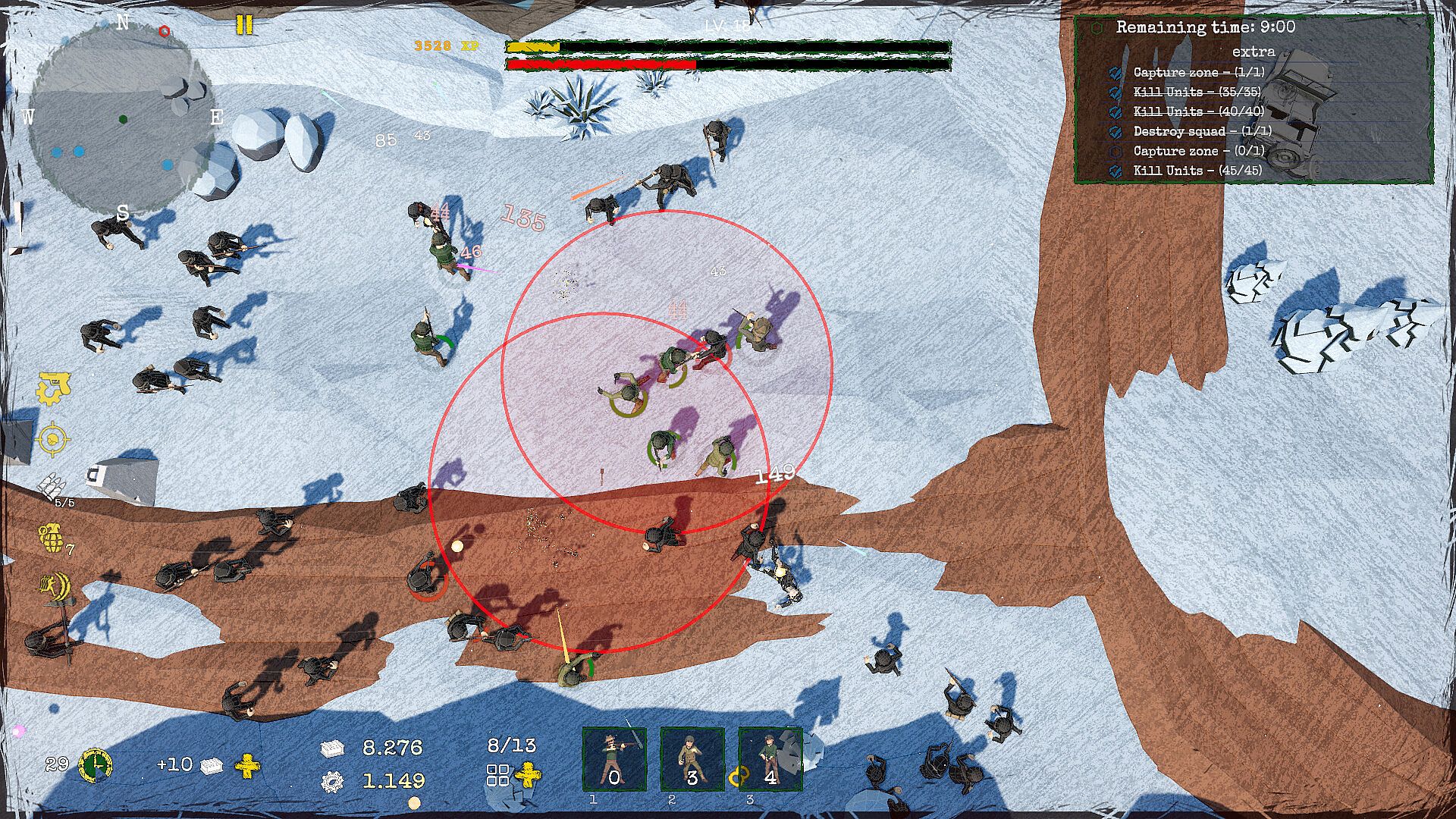 Start the game with a small company, WASD to move, fight, call for reinforcements, and improve through leveling up to survive the battle. The enemy will try to destroy you, so you must rush and be faster!