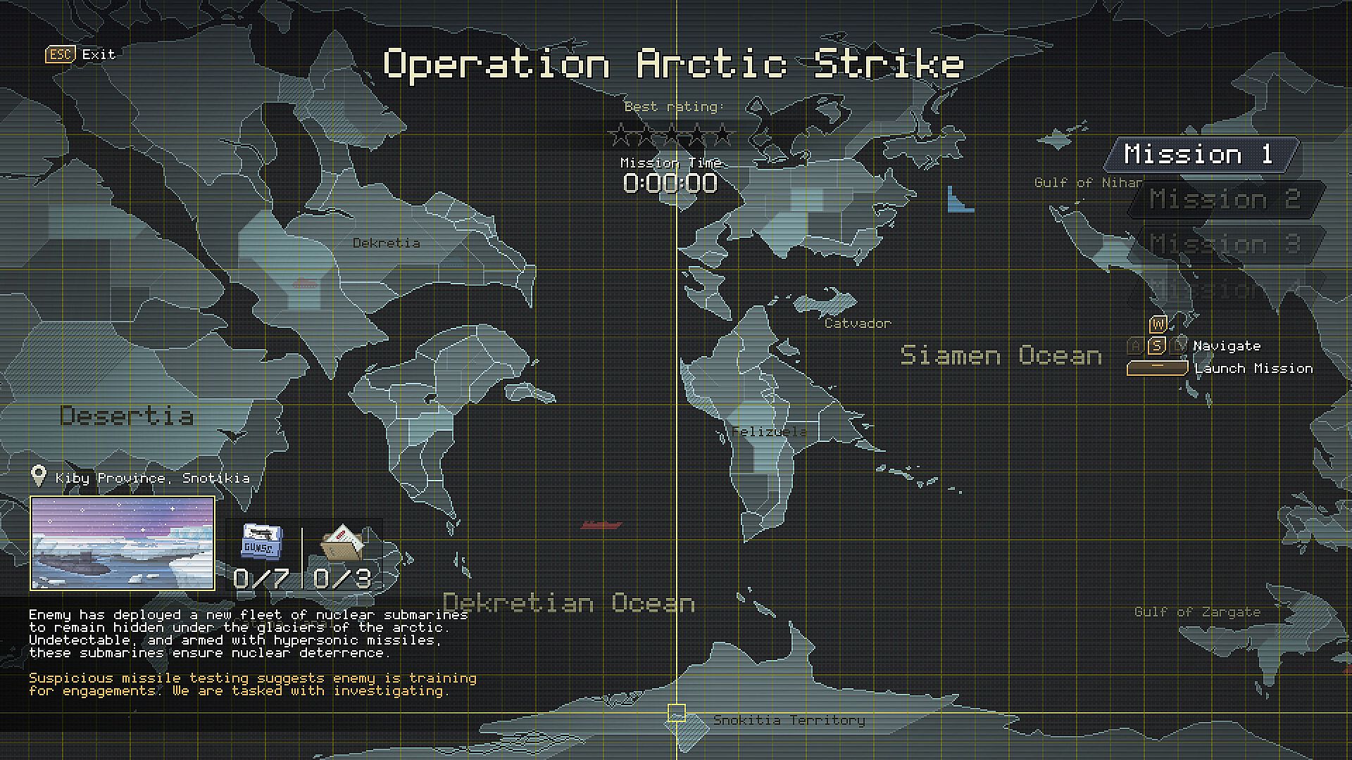 Suspicious missile testing suggests enemy is training for engagements. We are tasked with investigating.