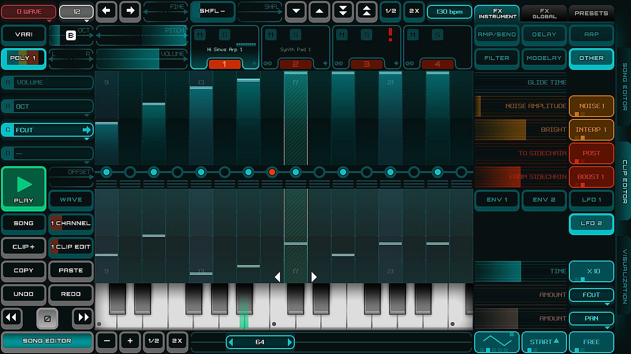 • Automation – Draw automation curves within songs that smoothly control instruments and effects.