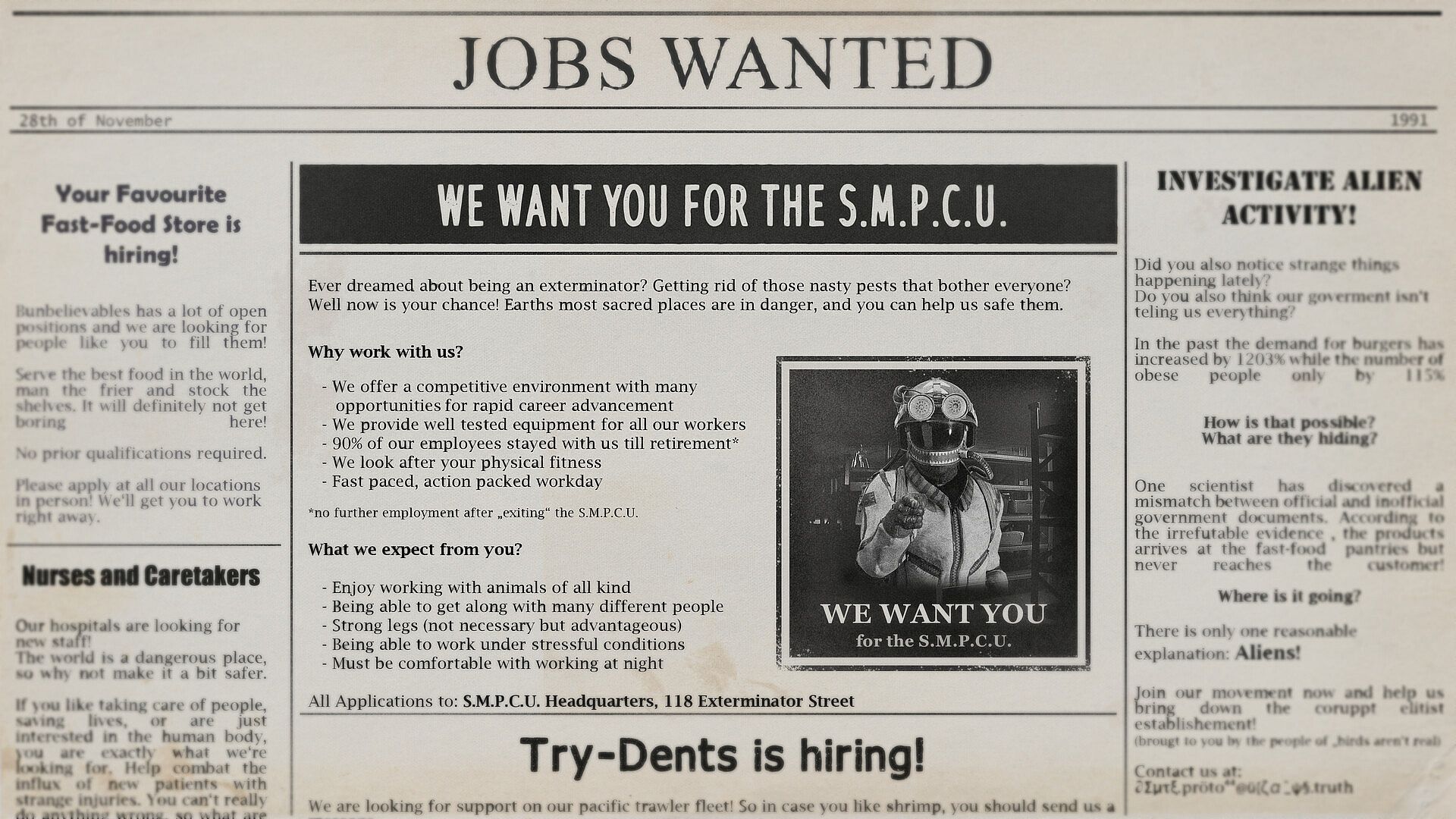 S.M.P.C.U. is an online co-op horror game for up to 4 players. You and your friends are part of a pest control unit of the special kind! The “Special Monster Pest Control Unit” doesn’t bother with cockroaches or rats; there’s a far more dangerous task at hand!Â