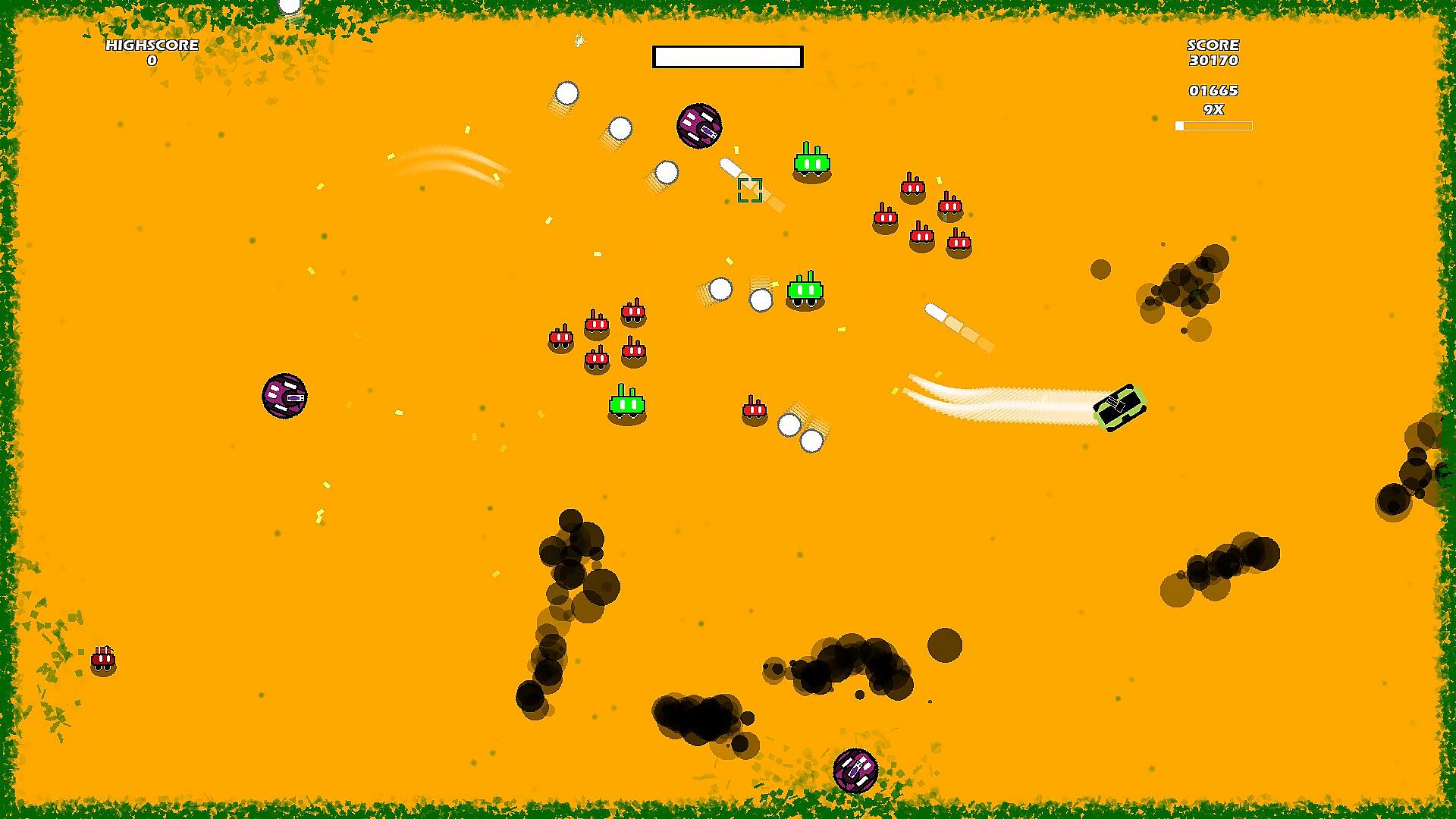Sack of Bots is a top down, score-chasing arcade shooter. Use one of your 4 cars to drift around hordes of bots and blast them away. Keep your score multiplier up as you slide, crash and crunch through a variety of bots in this simple shoot 'em up. Improve your score and last as long as possible in the onslaught.Features :