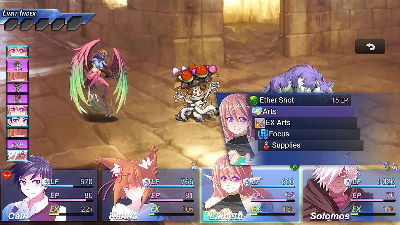 Engage in speedy turn-based battles against dangerous enemies utilizing various resources. Each character has a unique skill set with special interactions and conditional effects. Learn what each of your allies can do, Chain together Arts for big damage, upgrade your Arts with additional perks, and manage your resources in order to come out on top.