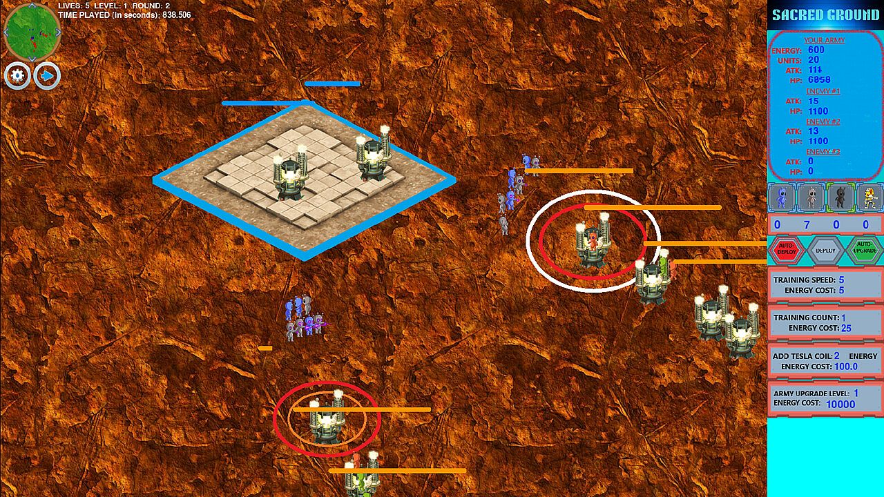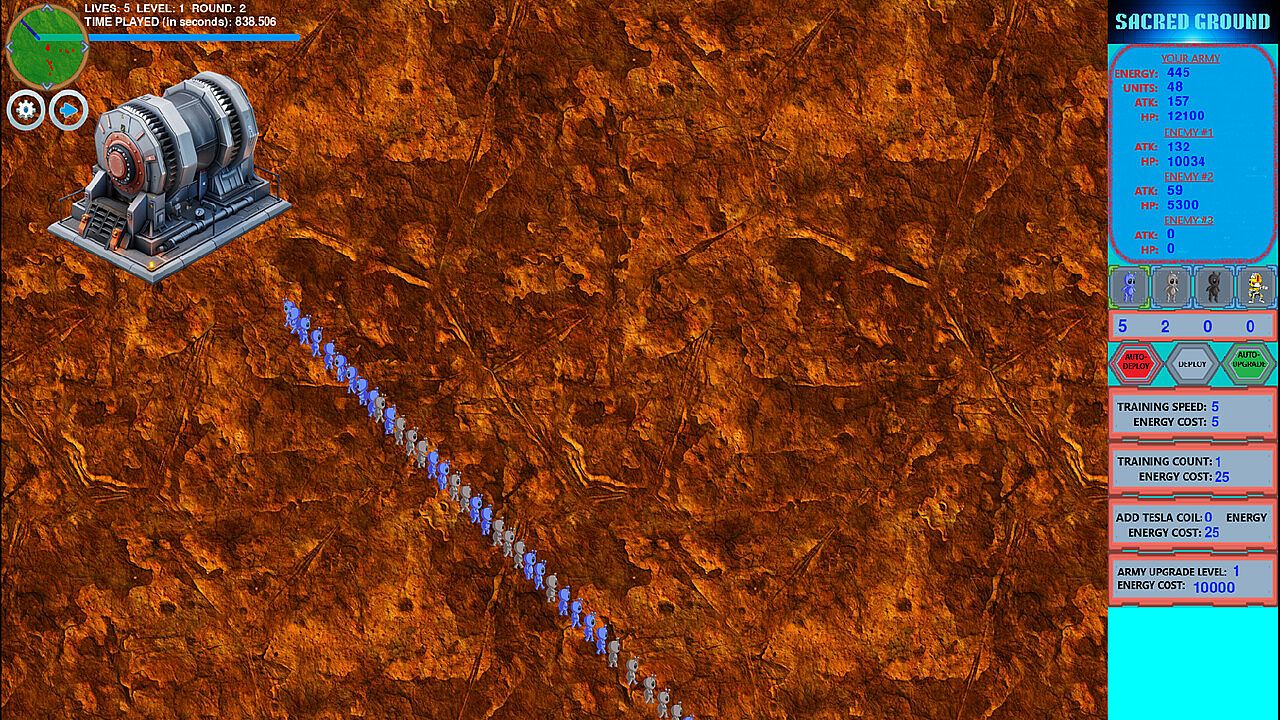 Will you get overrun or can you top the leader board? Auto-battler style clicker with fun characters vying for control of the map. Build and upgrade your army to take on more challenging levels! Place tesla coils to increase energy production and defend your base! Select and send your units anywhere you want for a strategic advantage or let them hunt down enemies on their own.