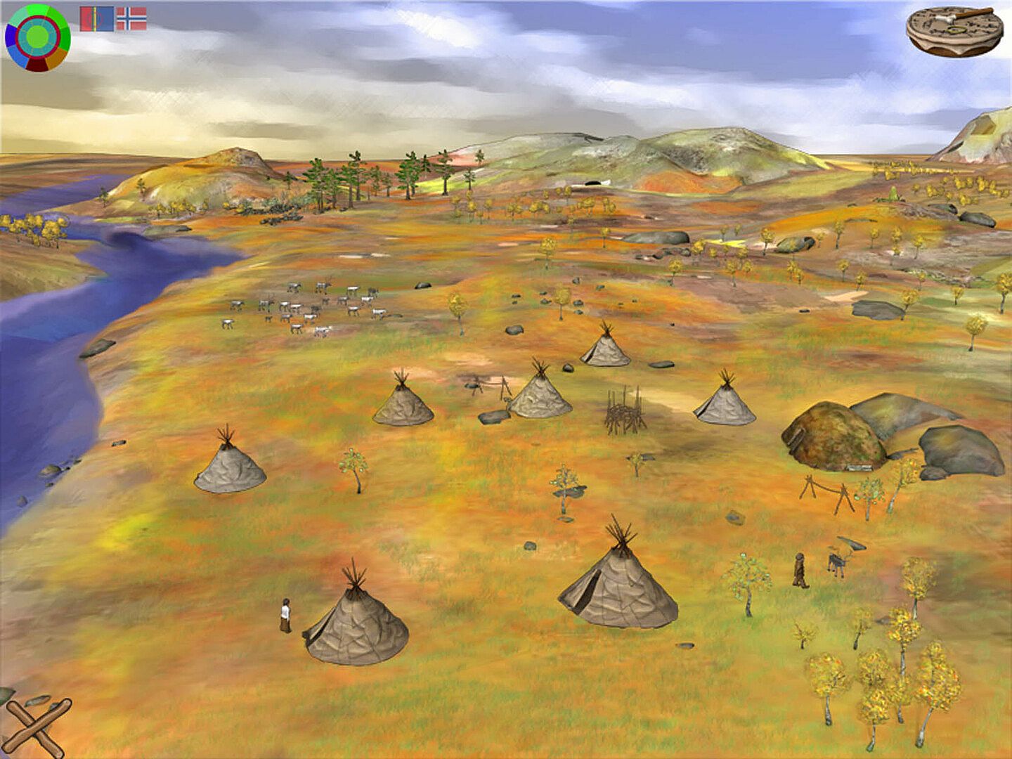 Discover Sámi culture through an indie casual adventure on PC that guides players through eight traditional Sámi seasons. Each season brings a unique challenge, like building and furnishing a lavvo, joiking to attract animals, helping a shaman craft medicine, battling supernatural forces, hunting, lassoing reindeer, learning duodji crafts from skin, yarn, or horn, and ice fishing. Success earns gifts to offer at the sacred stone, unlocking the next season. Optional mini-games sharpen skills for tougher tasks, such as joike memory matches or listening to tales about supernatural foes. The journey ends with a quiz on lessons learned across all seasons. Casual players seeking light educational adventures will enjoy this structured progression.
