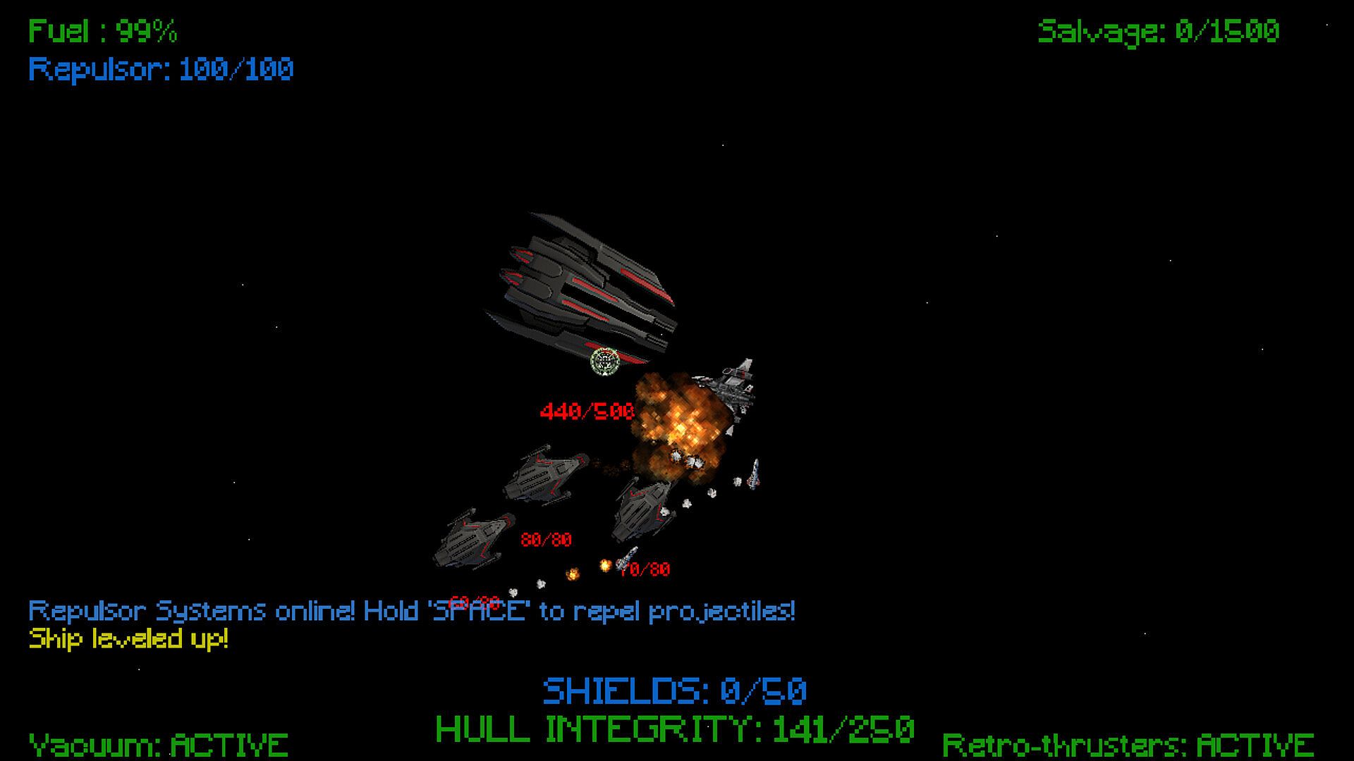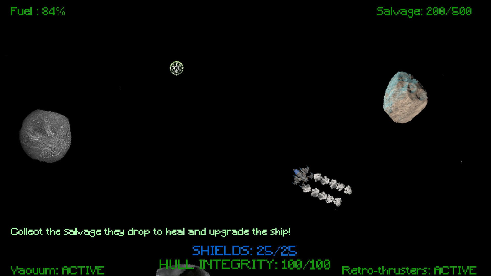 Salvager is a short game made in a custom engine, made in C, for university. As such, the playtime is currently around 20-30 minutes, and can likely be played in one sitting.