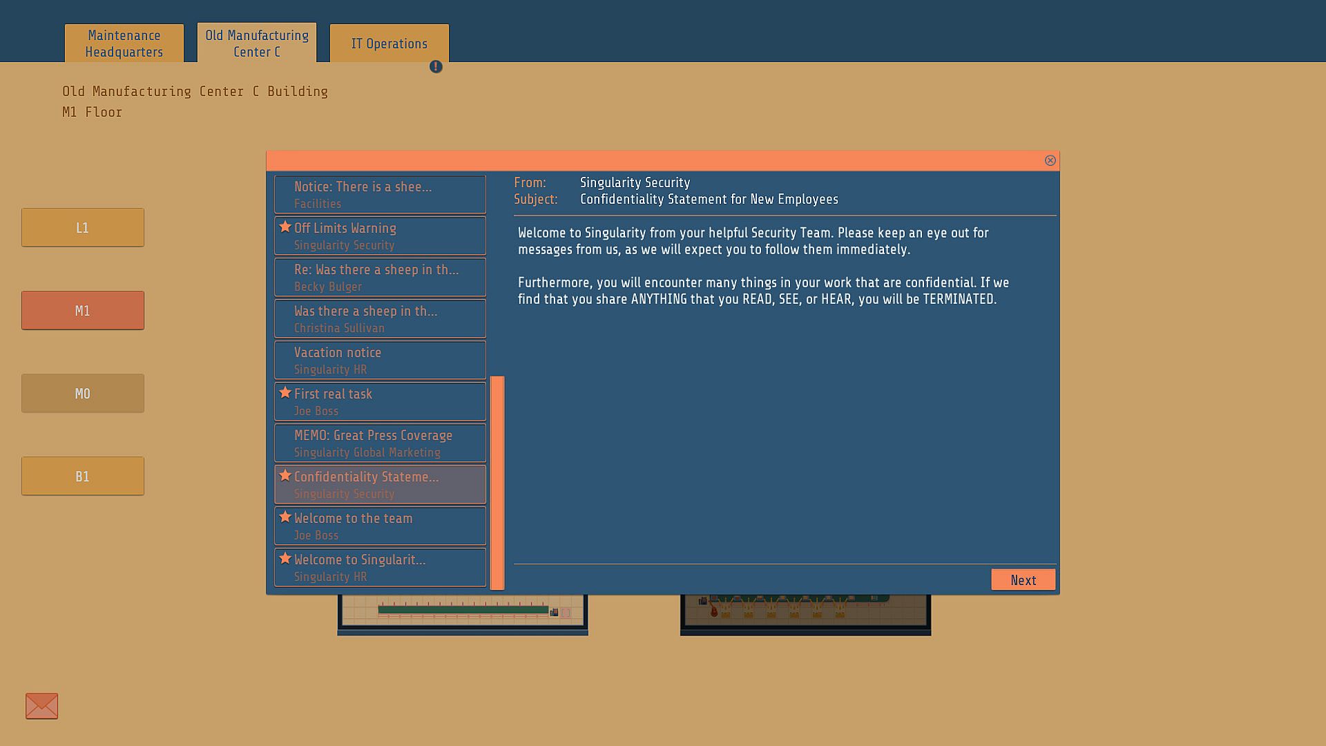 Sam must use the MaRUs to prepare the old, unused parts of the factory for Project Asimov: an exciting, new, top secret robotics project. While taking on this task, Sam begins to notice many odd things about the new robot: it is supposedly designed for automating household chores, but there seems to be an odd amount of destruction related to its production.