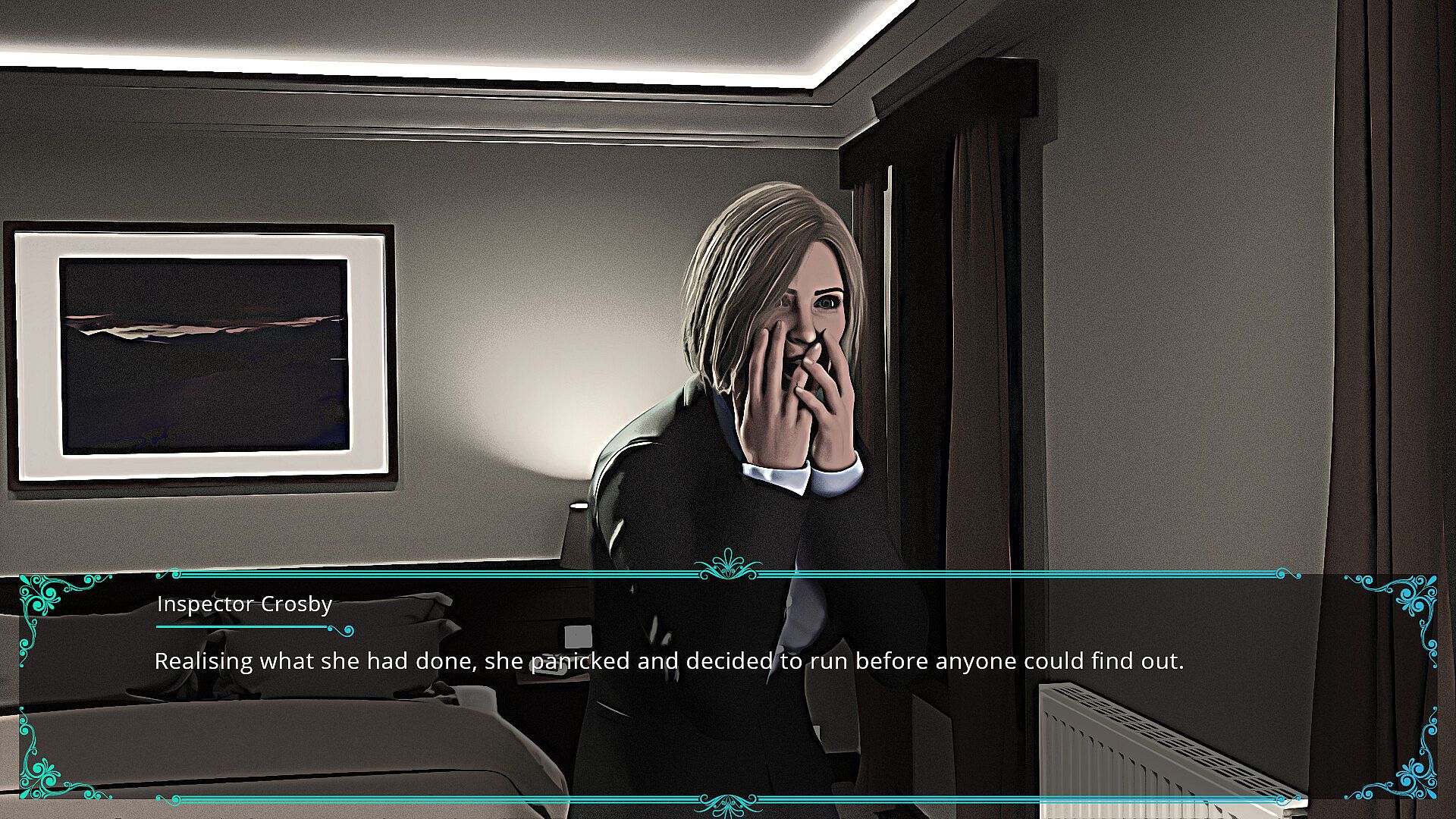 The game is a visual novel and comes with convenient features such as a log for re-examining saved evidence and studying artefacts gathered during exploration of the hotel.