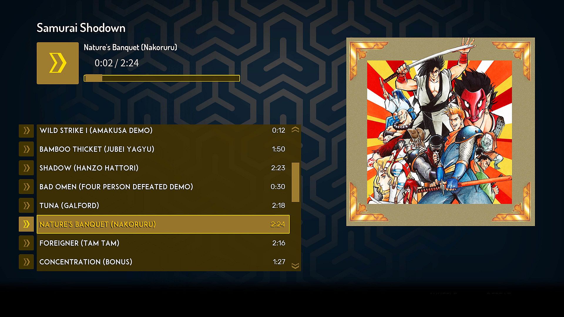 Relive the excitement of the SAMURAI SHODOWN series by listening to all of the individual titles’ soundtracks. In the Music Player found inside the Museum, there are over 200 tracks to choose from, spanning all six titles.