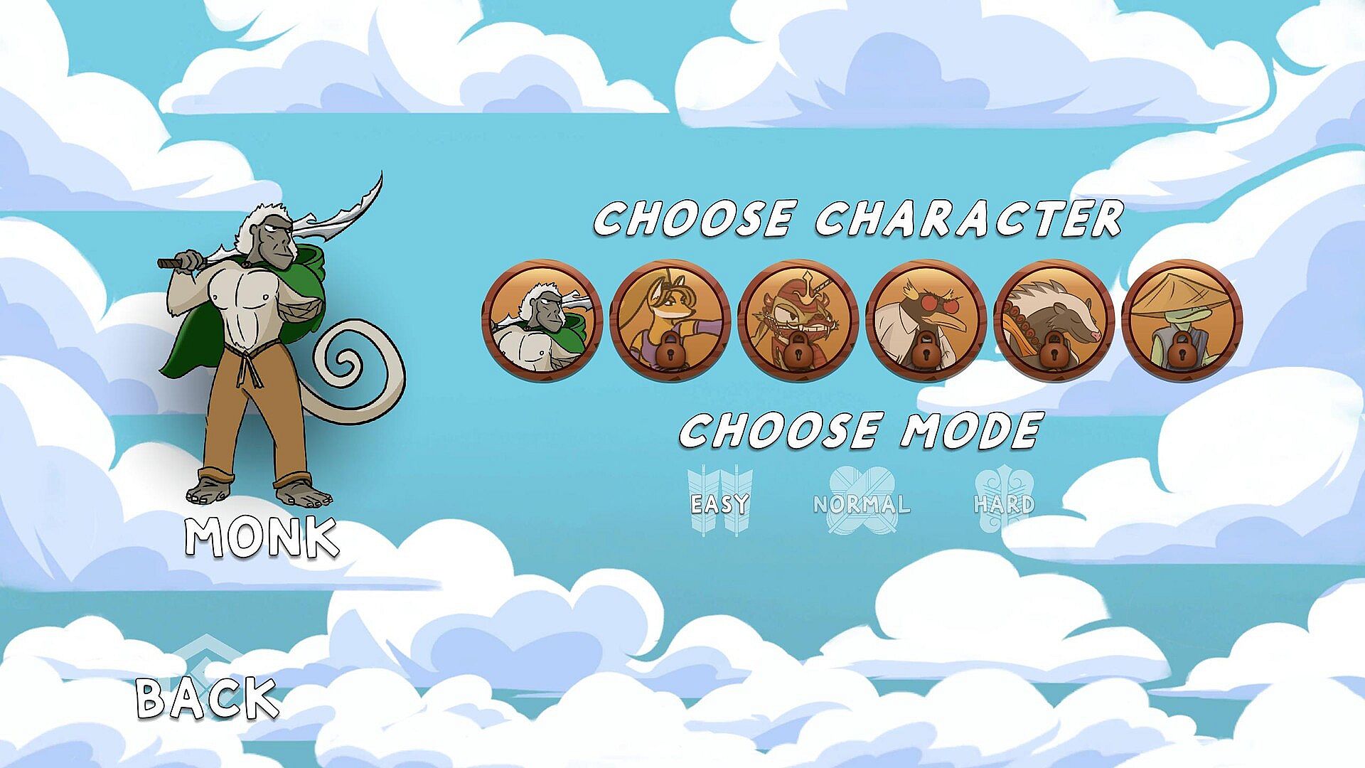 Fight through escalating solo campaigns, or in multiplayer, as six distinct characters: Bluetail, a skilled lizard samurai; Ichi, a stoic and cunning assassin fox; Chaolin, a grandmaster badger monk, and others. Each character interacts with the story in a unique way, from honing their skills to guarding emperors to overthrowing tyrants.