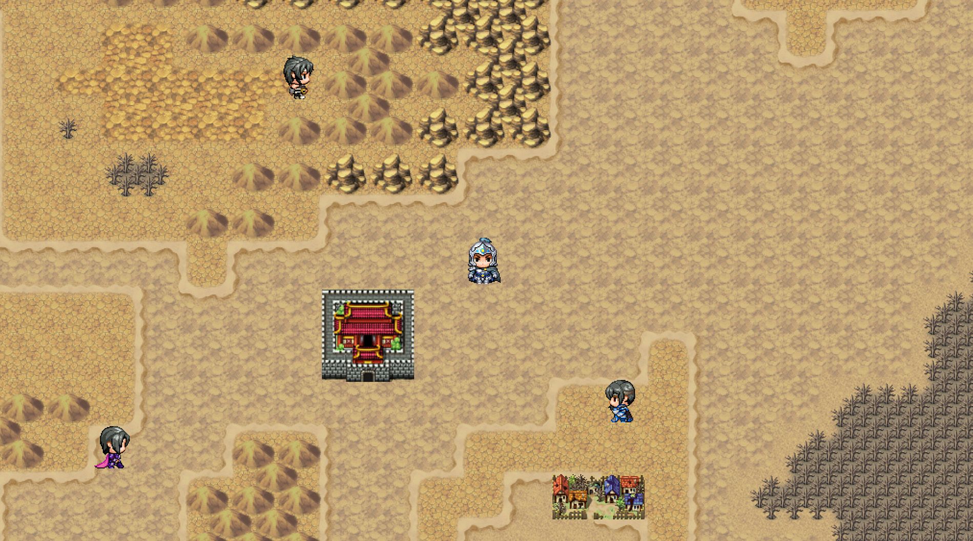 During the first time of game, Player can only choose Zhao Yun as protagonist. But when you pass the game and restart a new trip, you can use the item "Reward Of Finding Officer" to choose a random officer among more than three hundred officers in Sanguo's history. There are 38 cities(such as Xu Chang) and more than fifty villages(such as Chang Shan) which you can explorer. You can reinforce your troop by attacking bandits and adventure in Sanguo's world.
