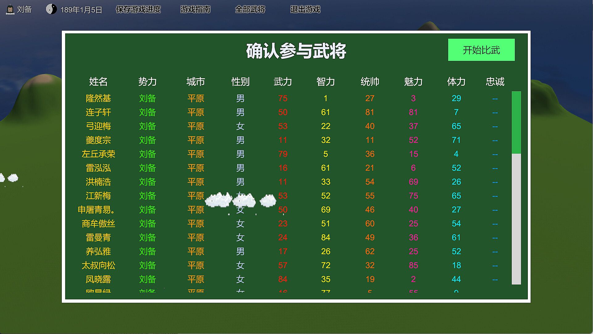 19:【武将选拔】本作特色之一,每年1、5、9月可以从士兵中选拔优秀的士兵成为己方将领