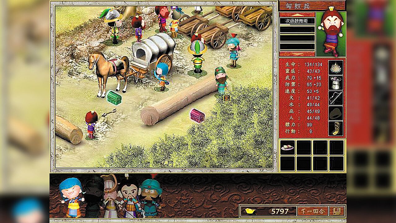 玩家可以經由訓練來養成部屬技能,一方面也可以採買許多配件武器來加強實力,像是各類文官所需要的計謀、兵書、錦囊,武官所需要的短劍、長劍、弓、棒、棍、槍...等兵器,都可以藉此一展長才。另外服飾也很重要,盔甲不僅是分辨上下階級的依據,更是做戰時不可缺少的護具,而道袍及扇子,就是分辨文官巫術智謀幾兩重的工具啦!其他一些寶物,如火神之戒、護心鏡、雷龍之環、狡兔石...等,當然就只有長官級的才可能擁有了。