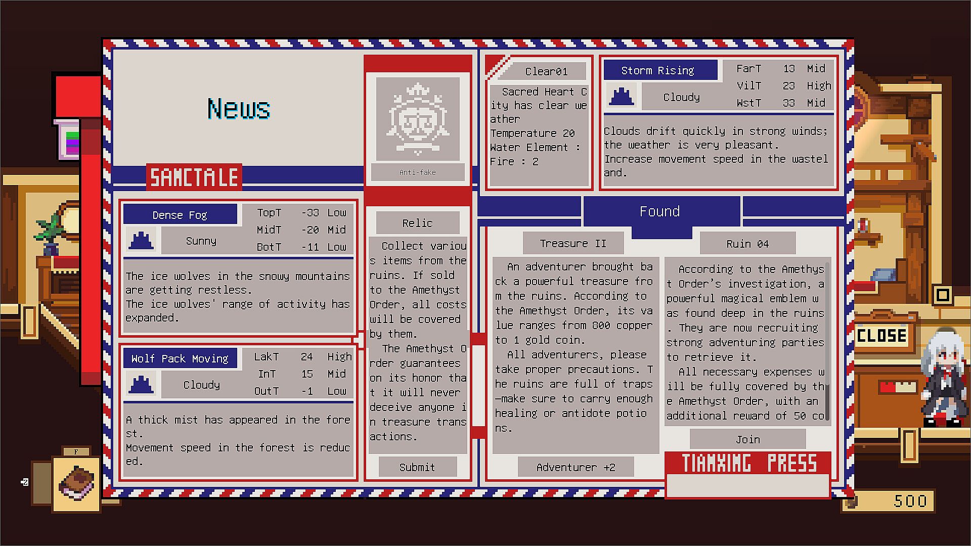 You, a young alchemist, will open a potion shop here, welcoming guests from all walks of life—adventurers, nobles, and local citizens. Each carries their own story, and through your interactions with them, you will gradually piece together the truth behind Sanheart City's downfall.