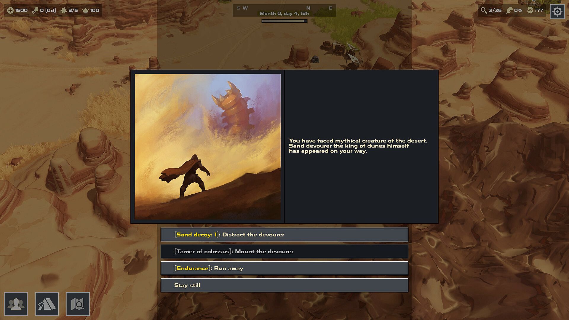 - Quest story line to resolve on each territory - decide what side do you choose and change the history of the desert.