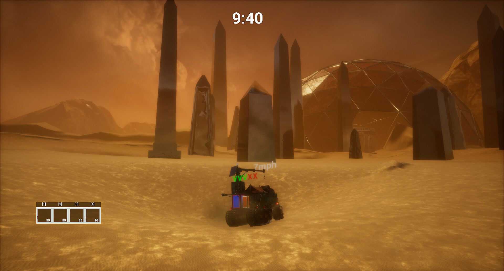 Get behind the wheel of a planetary rover and travel through ruins lost in the sands to discover what's hidden deep within the sand dunes. Sell your loot to the locals and fulfill their quests to learn about the crazy past of these places. Equip your transportation with advanced equipment to mine more gems and rare animal skins from the most hidden corners and reach the distant hills. But keep an eye on the time: you won't be happy with the fearsome creatures that may come to visit you under the cover of night...