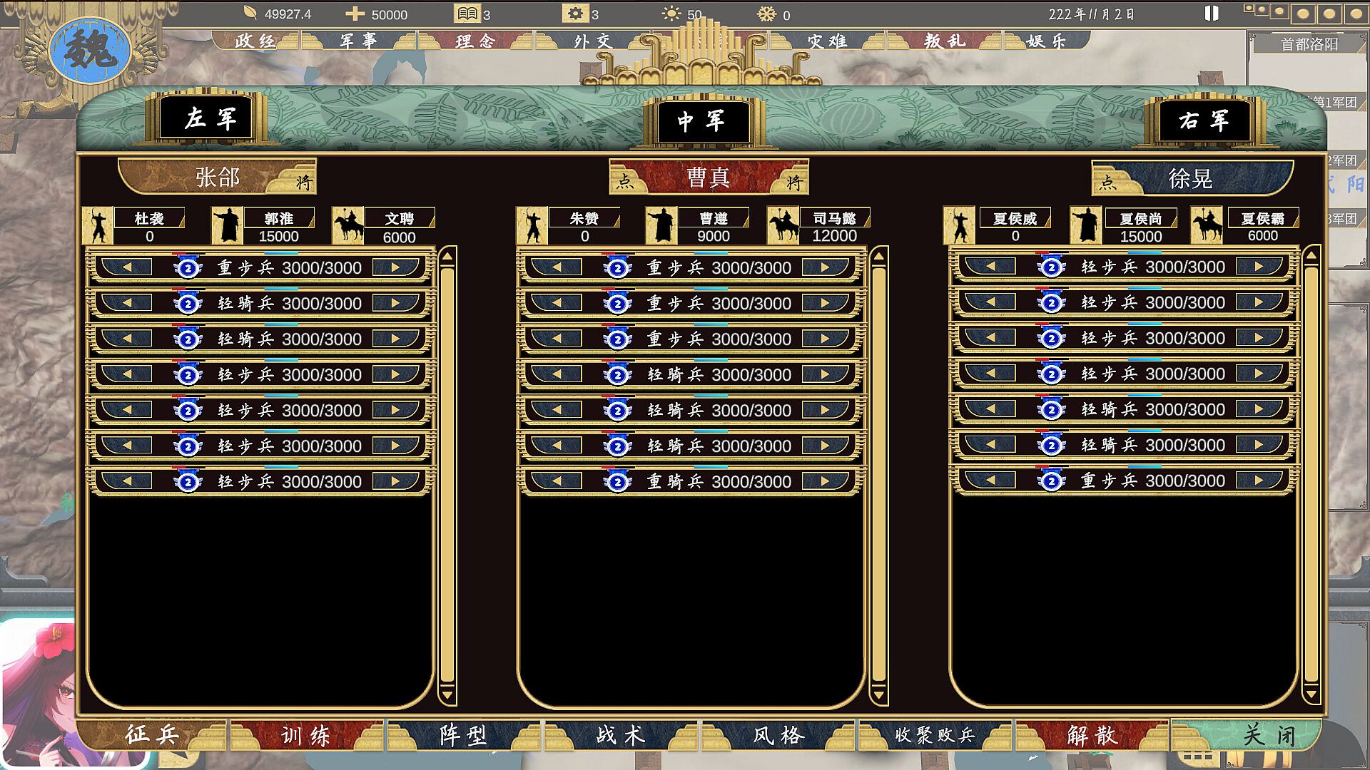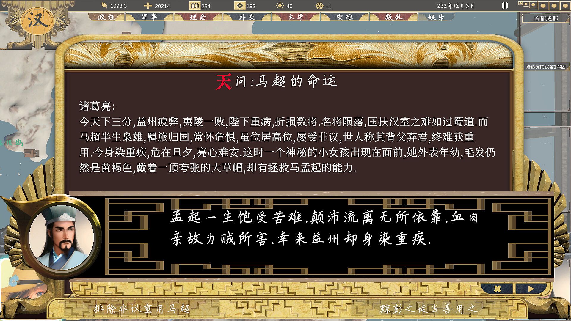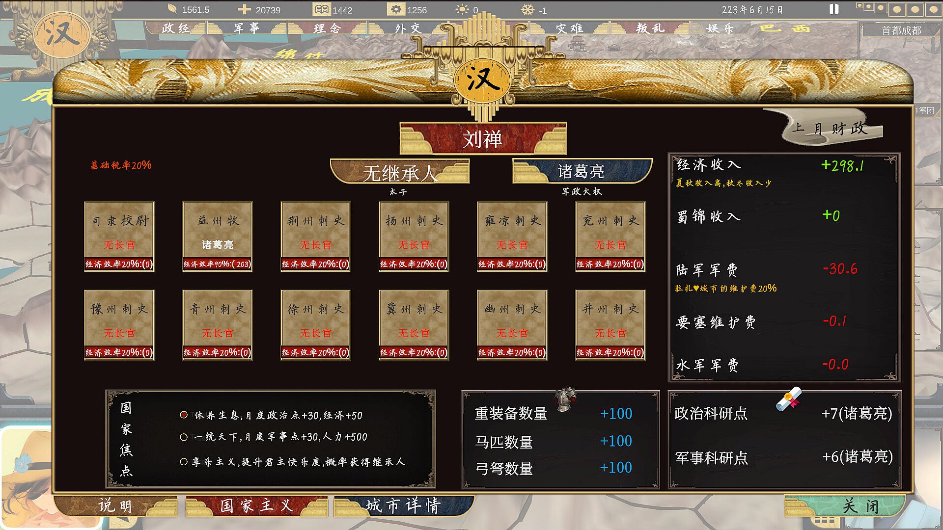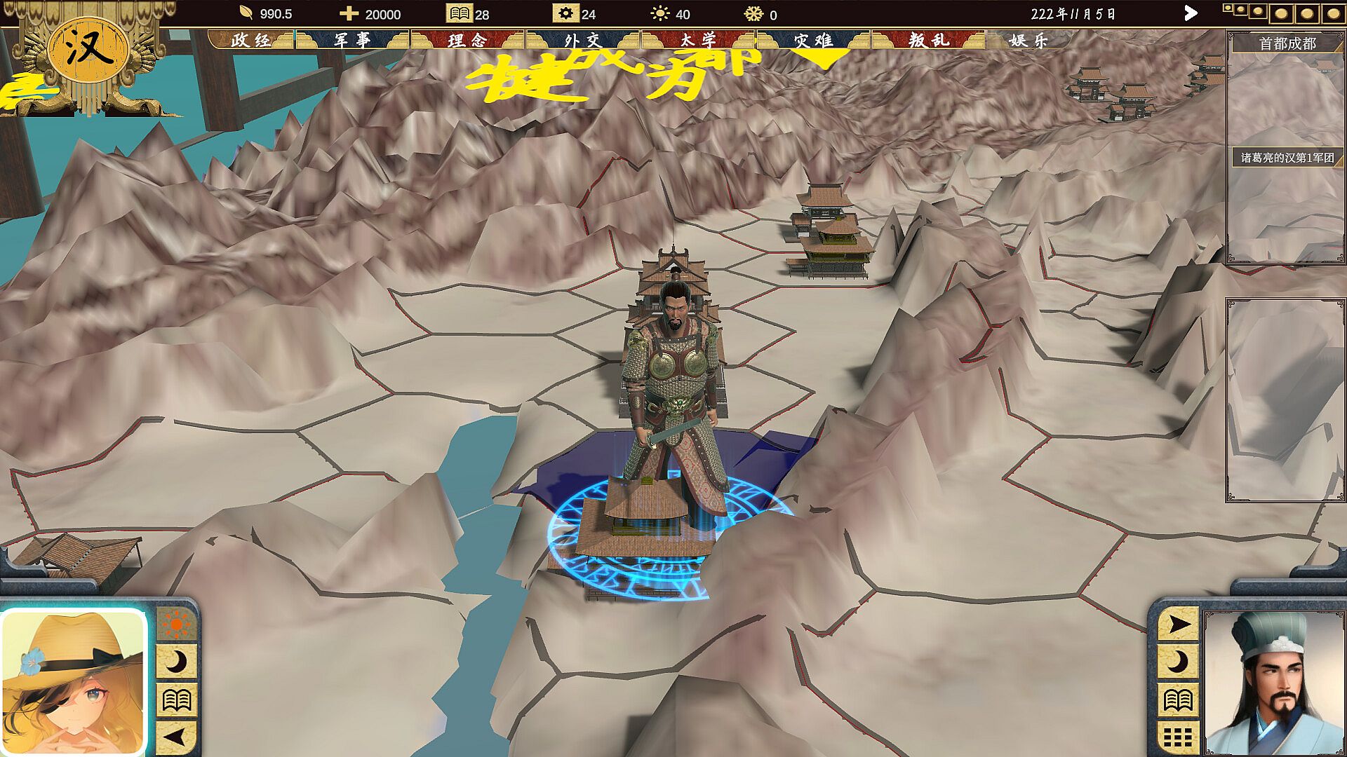 This is a real-time strategy game, a war game about Three Kingdoms after 223, Focus on Zhuge Liang, Cao Pi and Sun Quan.