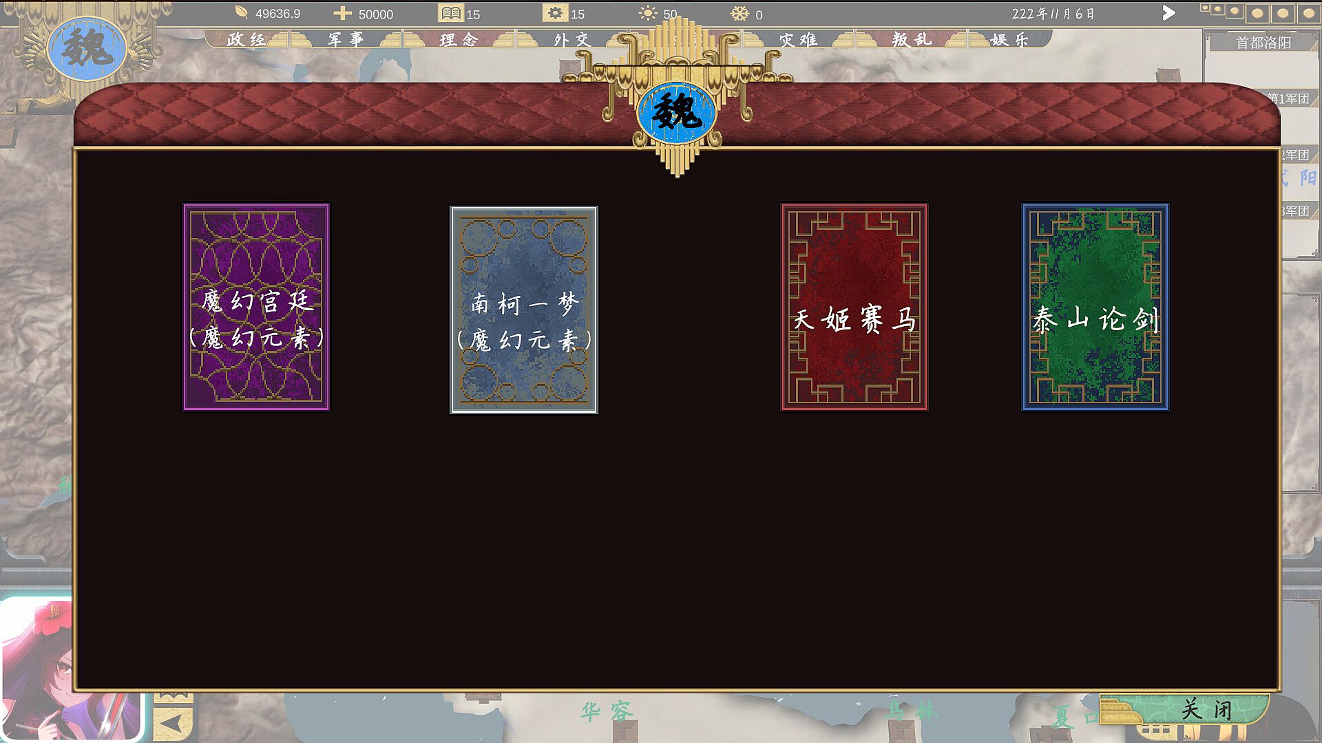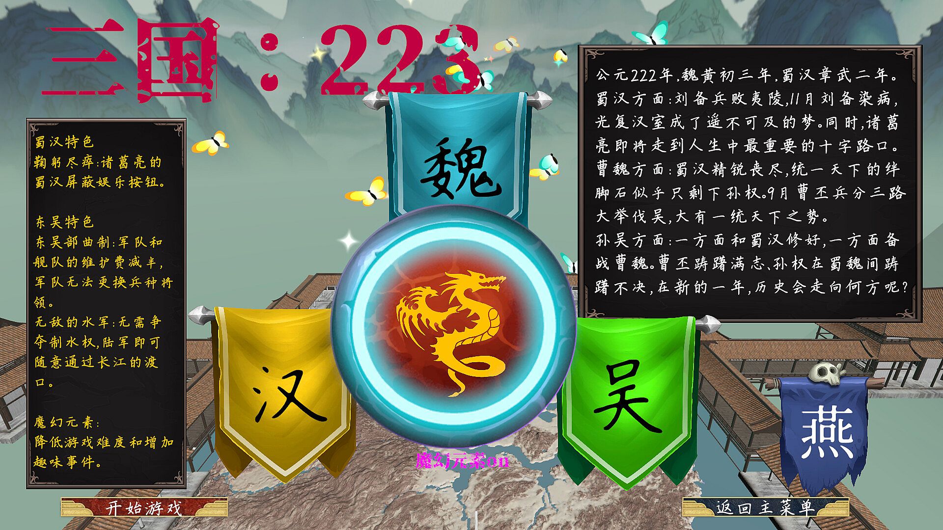 Opening choice: The game can start with Wei, Shu, Wu, or Yan, and you can choose whether to turn on magic elements.