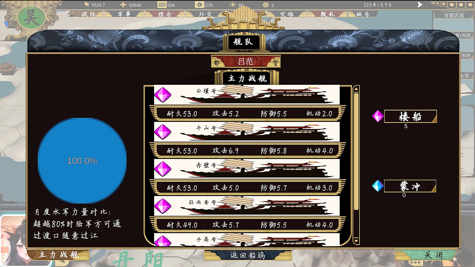 Water War Elements: Except for the Wu, other countries must ensure the control of the River. Craftsmanship, concepts, and types of ships make each ship's attributes unique, affecting the final outcome of naval warfare.