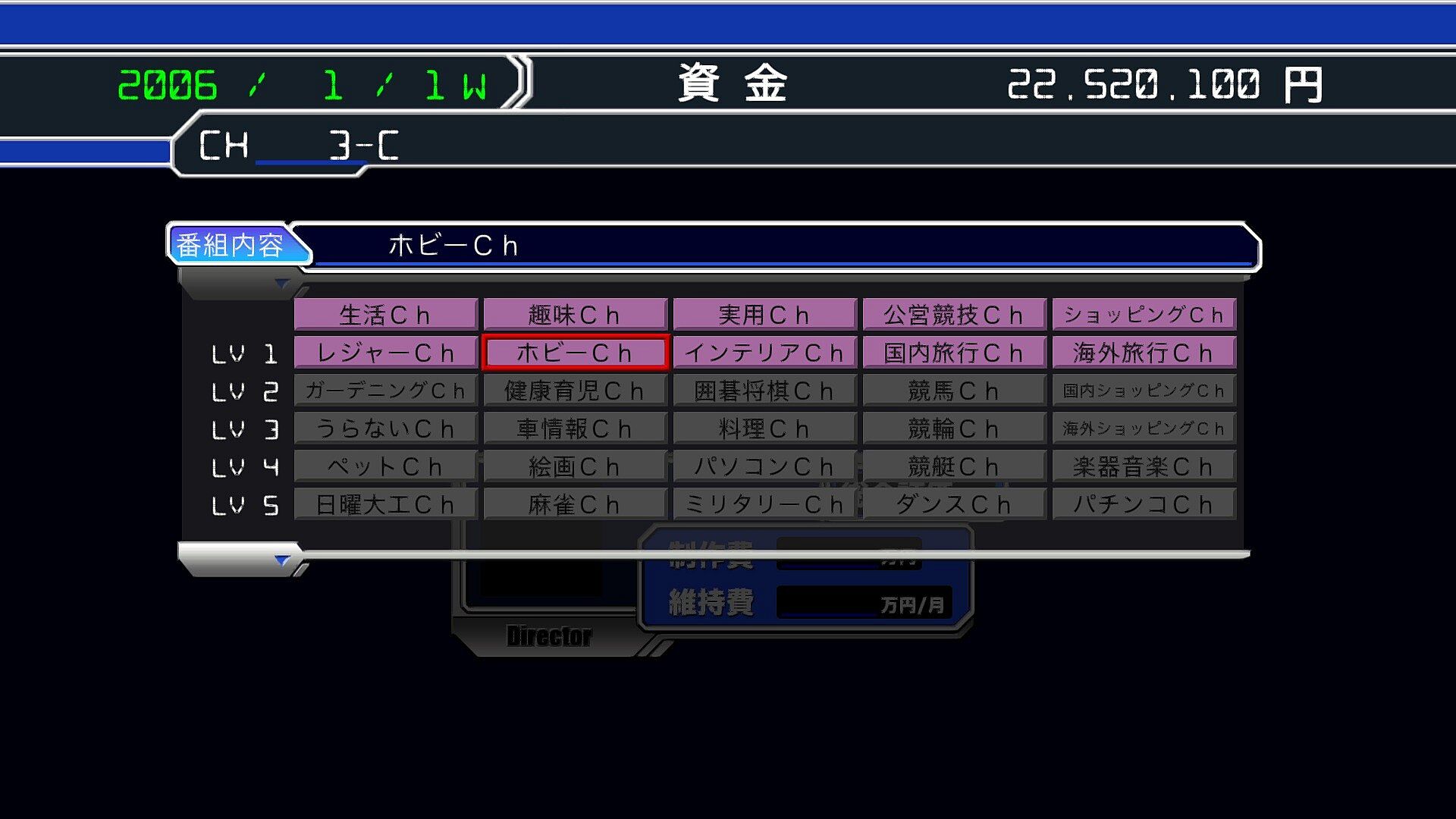 ゲーム中に制作できる番組は、その数200以上!多彩な番組の中から視聴者が望むものをいち早く察知して、タイムリーに投入するか、経営センスの見せ所です。