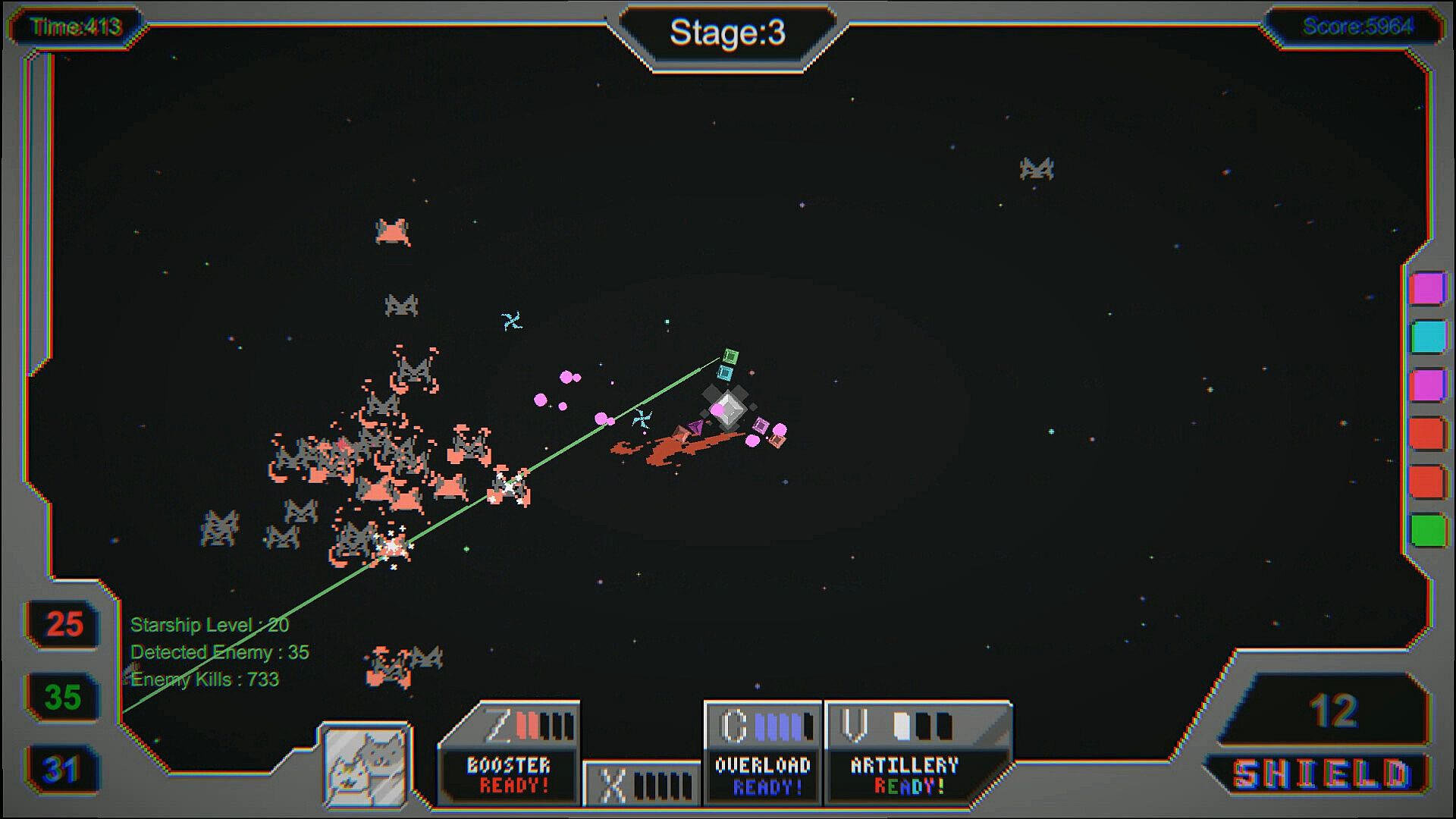 Permanent Ship Upgrades: Game over isn't the end. Permanently upgrade your ship at the 'Upgrade Center' on the title screen to make your next run easier.