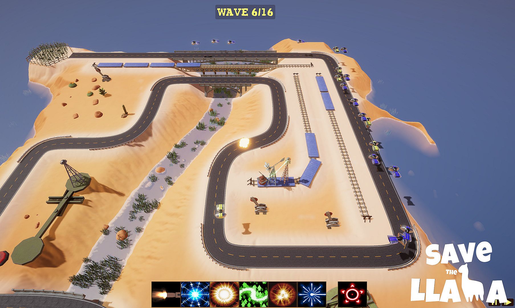 Assemble advanced towers from old farm equipment, mechanize the landscape, and erect an impenetrable perimeter to defend your herd. Construct your towers on moving platforms and orchestrate their position and timing to defeat waves of alien UFOs. Craft the perfect defense and save your llamas from the alien menace!