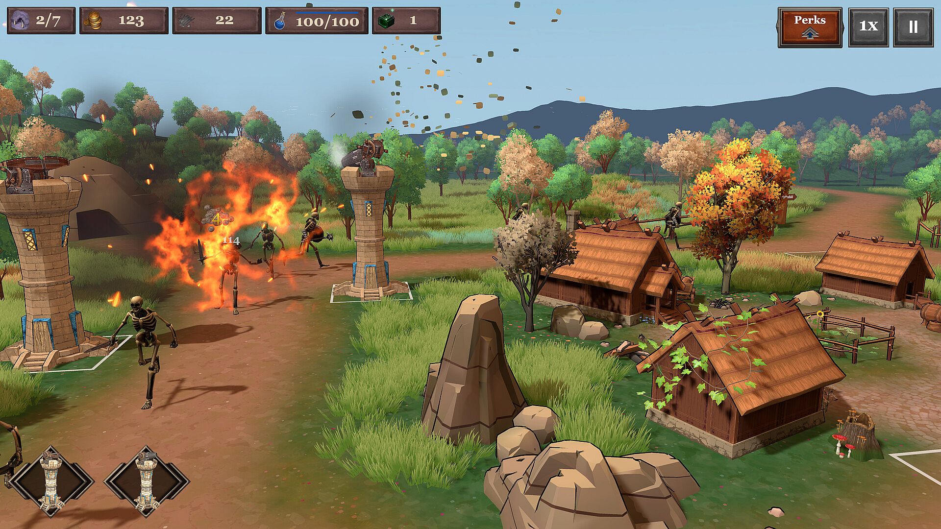 Save The Village is a captivating medieval tower defense game that puts you in the role of a village protector. Each village you defend is under siege by waves of skeleton warriors, goblins, and powerful bosses. You must build, upgrade, and strategically position towers, and use magic to stop the enemies in their tracks.