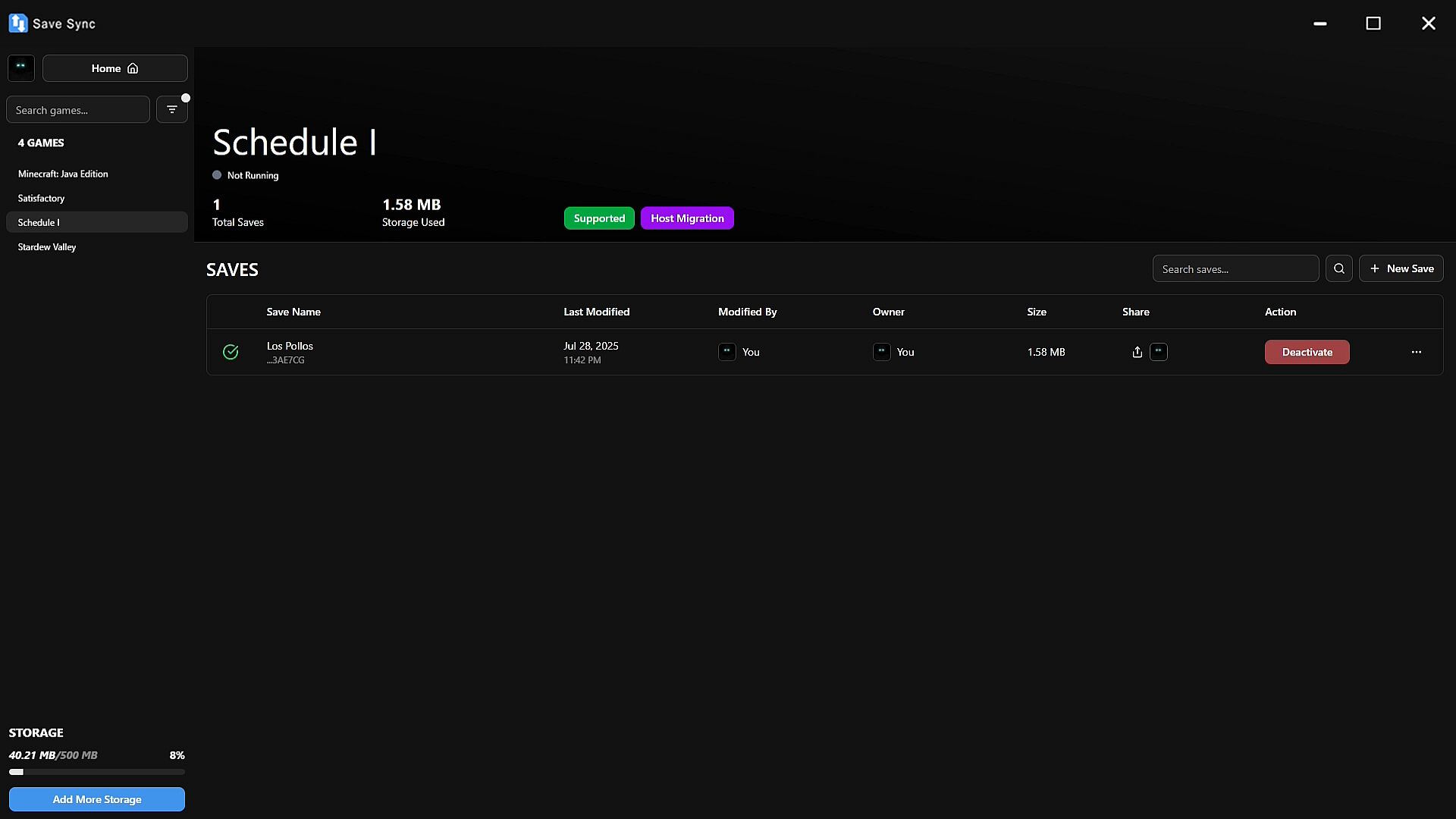 • Compliments Steam Cloud: Works alongside Steam Cloud without conflict. Save activation/deactivation and host changes reflect properly, even on unsupported platforms.