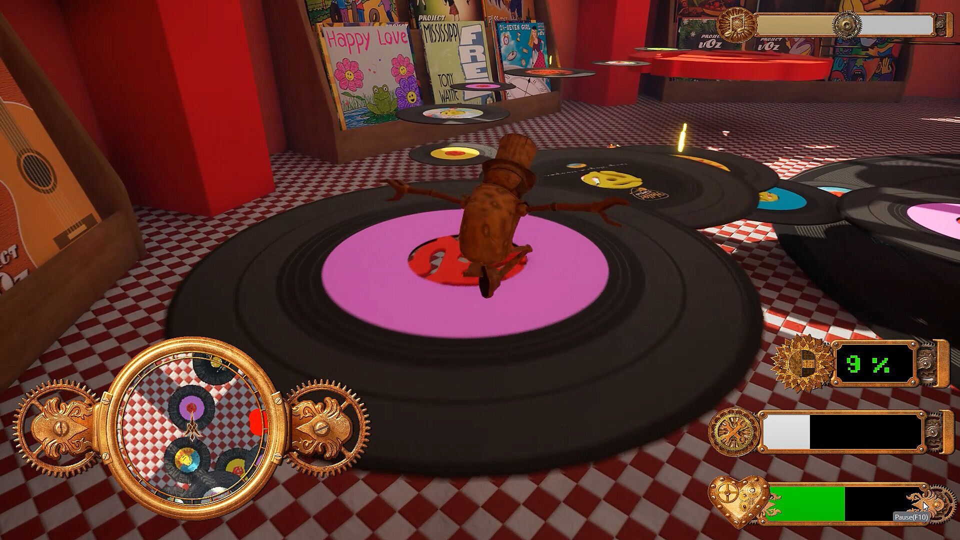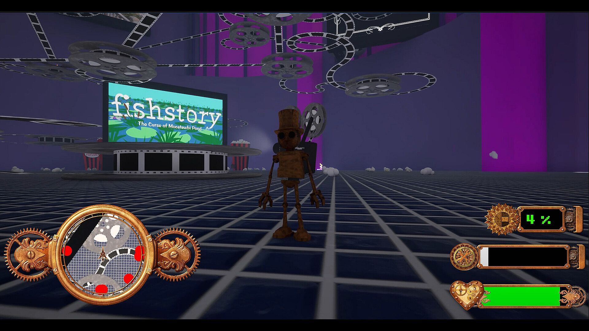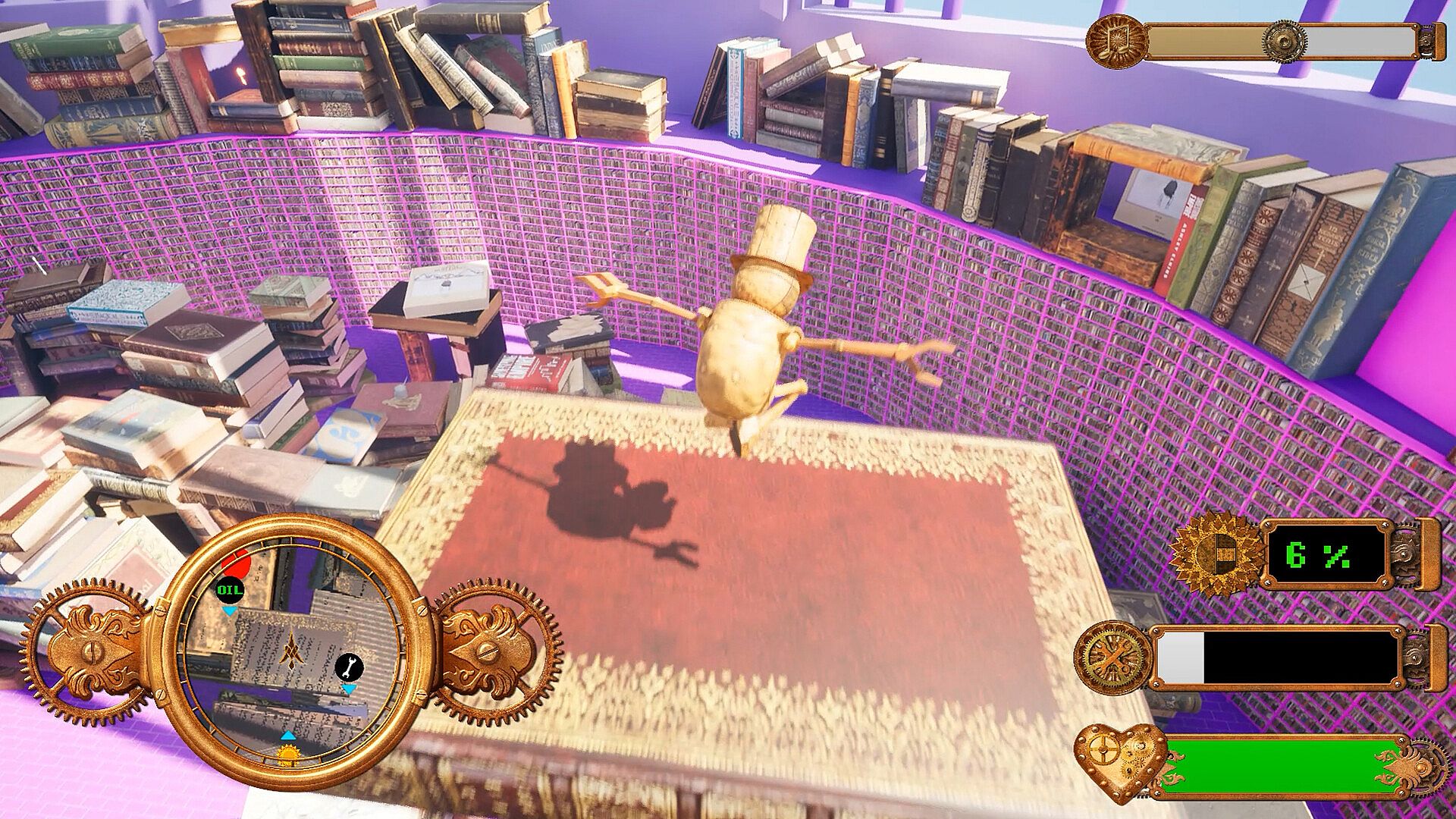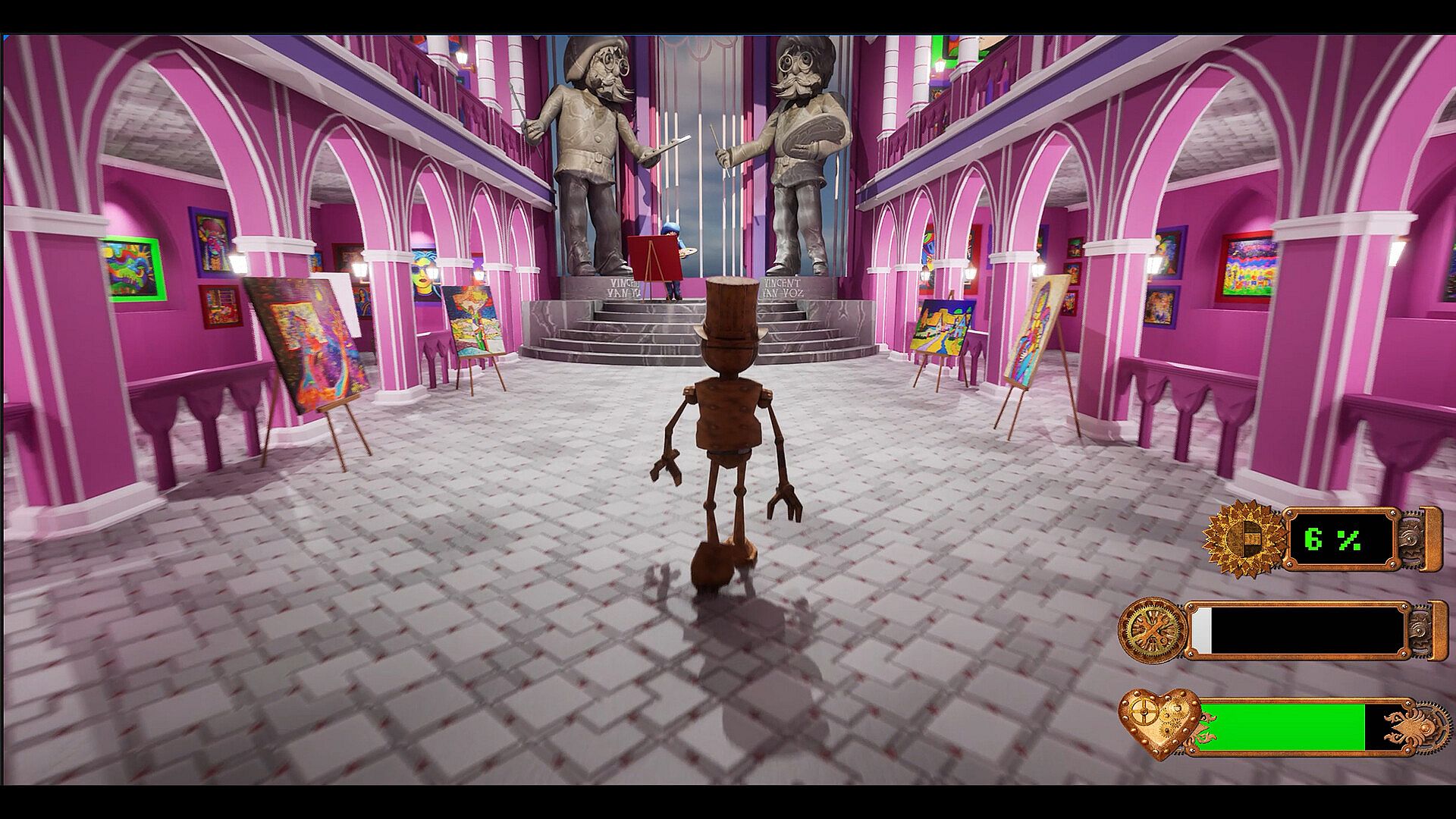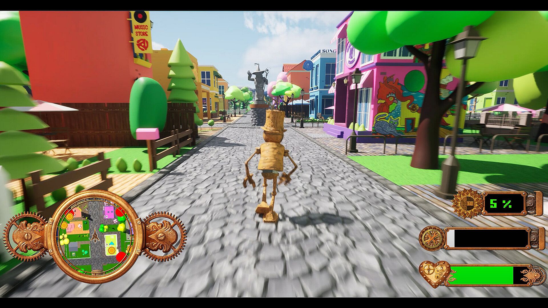 Explore the town of Songburg, and meet its quirky residents as you search for the shattered pieces of the Wizard's invention, the Songshiner.  Visit the Art Gallery, Library, Cinema and many other locations!  Travel through portals to the Dreamstealers' realm, and collect the stolen pieces there!  Upgrade Automavoz's abilities, and maybe find him some sporty new hats along the way!