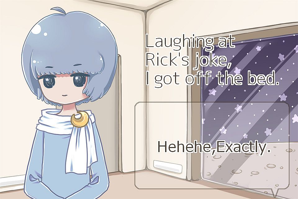 Life on a lunar base unfolds through an interactive adventure and short visual novel. A wall-mounted electronic calendar flickers with "IMPORTANT!" reminders, while characters exchange casual greetings like "Good Morning, Breakfast is Ready" on Christmas Eve. Japanese voice actors bring the female protagonist, male protagonist, and Rick to life with soft, soothing tones. Players turn pages in a picture-book style, soaking in cute, relaxed illustrations and a read-aloud feel that evokes fried eggs and profound reflection. The experience delivers a sad yet refreshing vibe, prompting thoughts on modern society. Short indie adventure fans who crave immersive, voice-driven stories find a quick, replayable gem here.